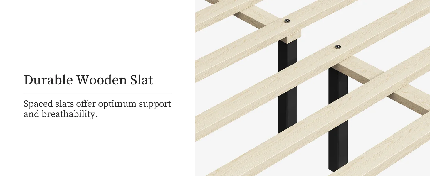 Solid Slats: Come with aligned 12 solid support slats and a reinforced wooden frame for added durability and strength. The center support system provides an excellent weight distribution across the bed.