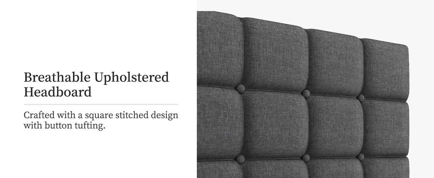 Square Stitched Design with Button Tufting: With deep square stitches and button tufting, the upholstered headboard exudes vintage glamour and visual depth, adding a touch of elegance to any bedroom, guest room, or dorm.
