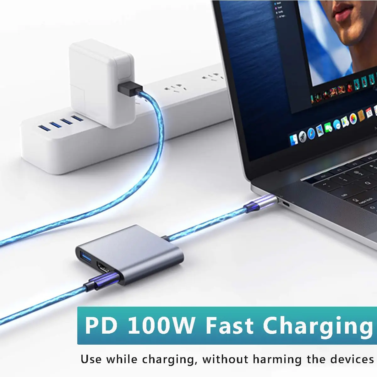 7.Support 100WPD fast charging, continuous power supply for work and entertainment.