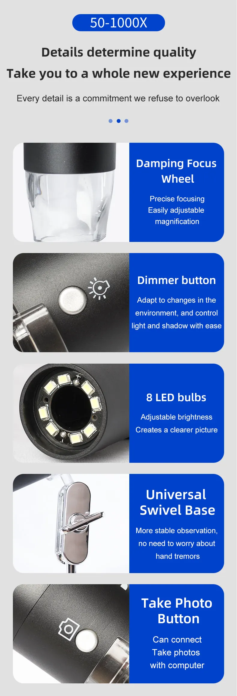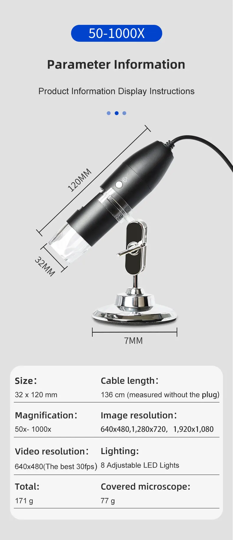 USB Digital Microscope,real 50X-1000X,8 LED Magnification Endoscope Camera with Carrying Case & Metal Stand,soldering microscope