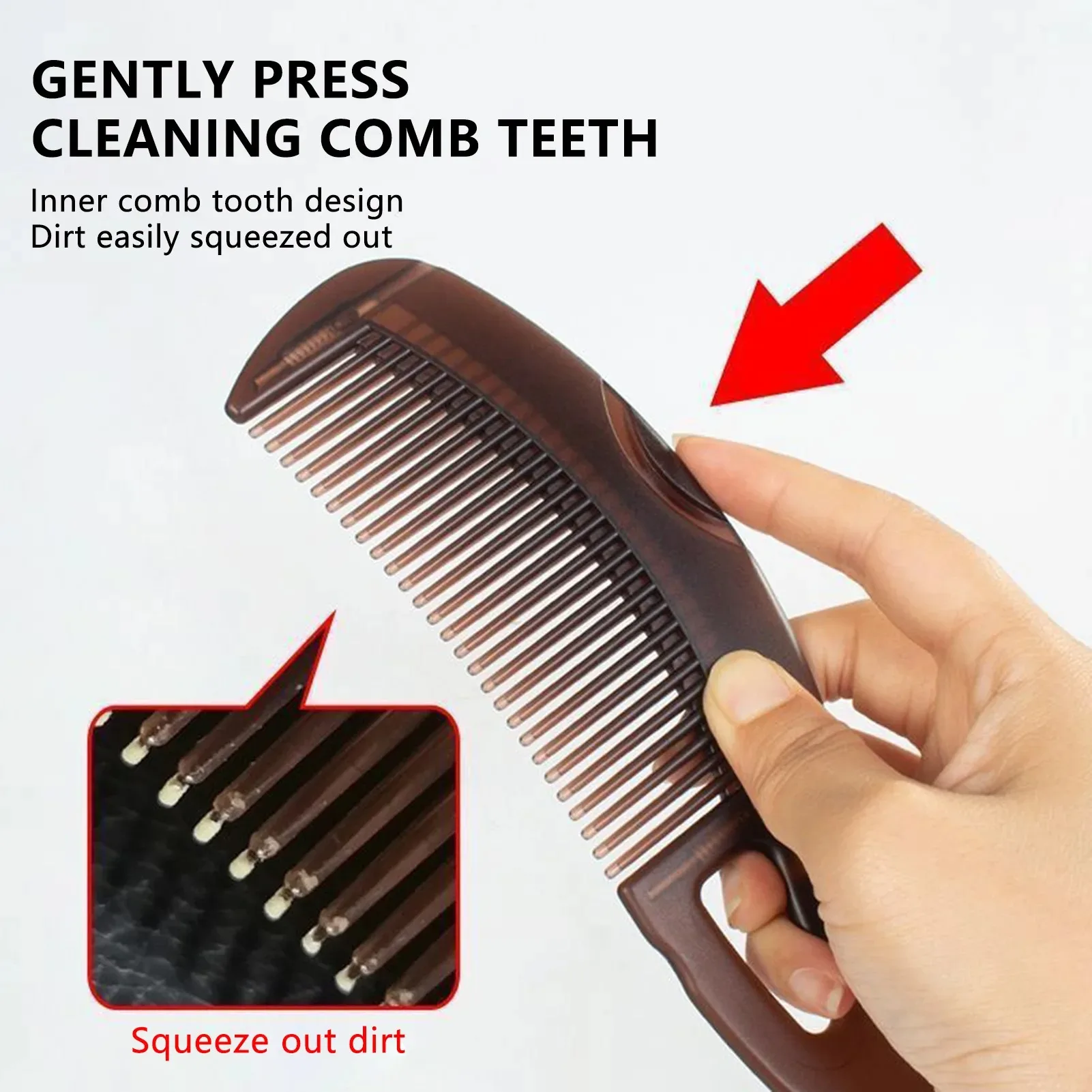 【Dandruff Comb】Our innovative comb features unique hollow teeth that effortlessly gather grease and dirt from the hair and scalp. Simply press the button on the back of the comb to remove impurities, bidding farewell to wet and dry hair tangles while combating dandruff.