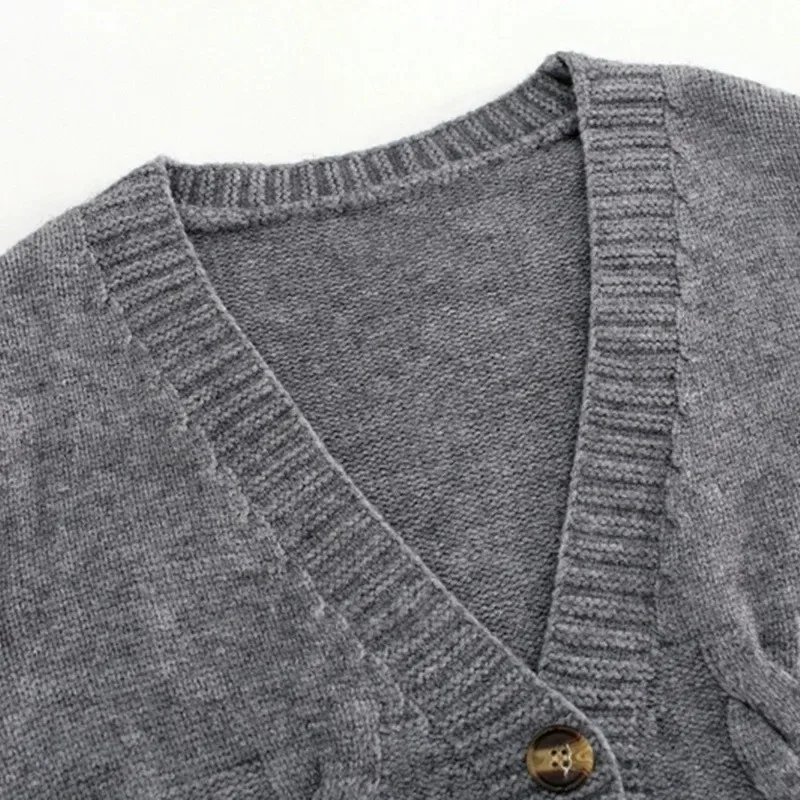 V Neck Cropped Cardigan Women Long Sleeve Twist Knitted Sweater Coats Autumn Winter Keep Warm Korean Fashion Jacket Cardigan