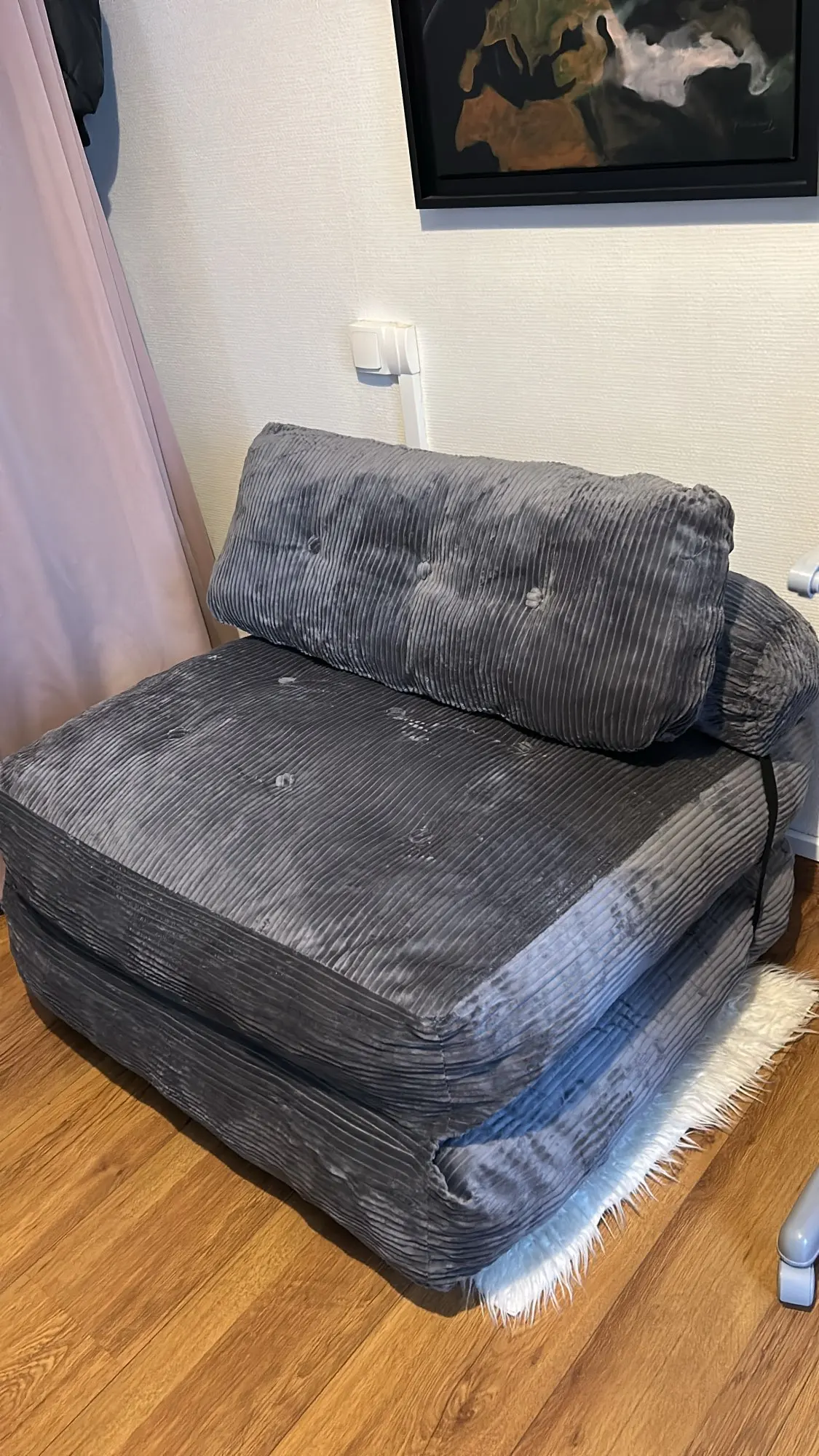 Important Note: The chair bed is compressed and vacuum-sealed to reduce space and carbon dioxide emissions during shipping. Upon unpacking, allow the sofa bed to breathe for 48 hours to regain its original shape and size