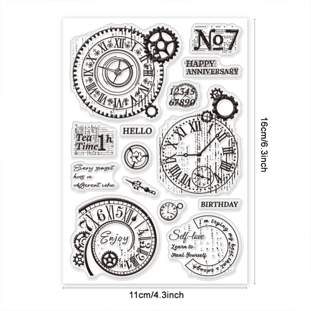 Vintage Gear Clock Clear Stamps Clock Time Silicone Clear Stamp Gear Wheel Transparent Stamps for DIY Scrapbooking and Cards