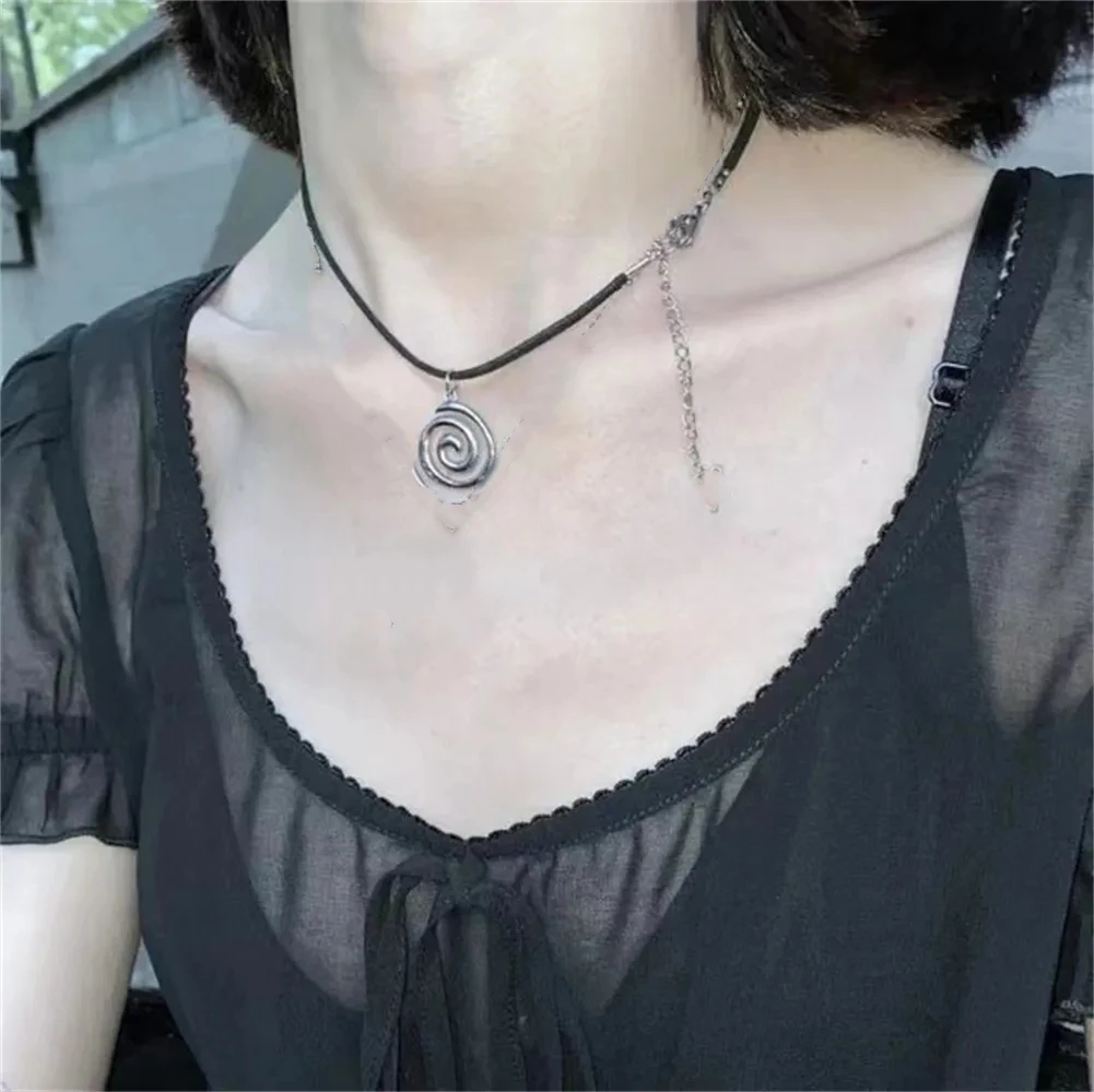 Vintage Spiral Vortex Pendant Hand-woven Leather Rope Necklace for Women Unisex Boho Pentagram Necklace Fashion 2023 Y2K Jewelry