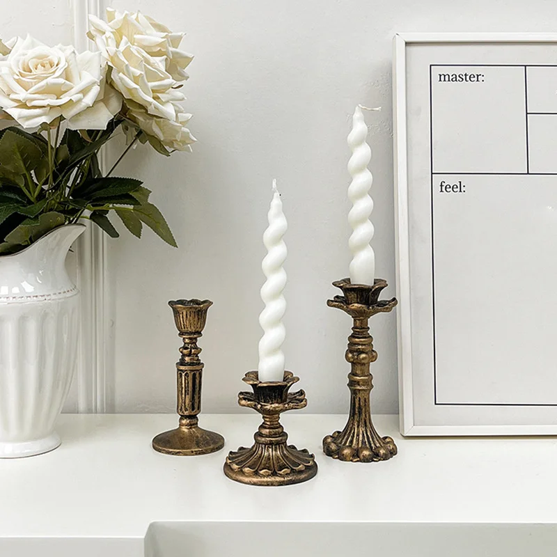 1.Quality Craftsmanship: Crafted from lightweight yet sturdy resin material, our vintage candlestick holders boast reliability and durability. With a smooth touch, solid build, and no-fade, ensuring they withstand the test of time without breaking or deforming.