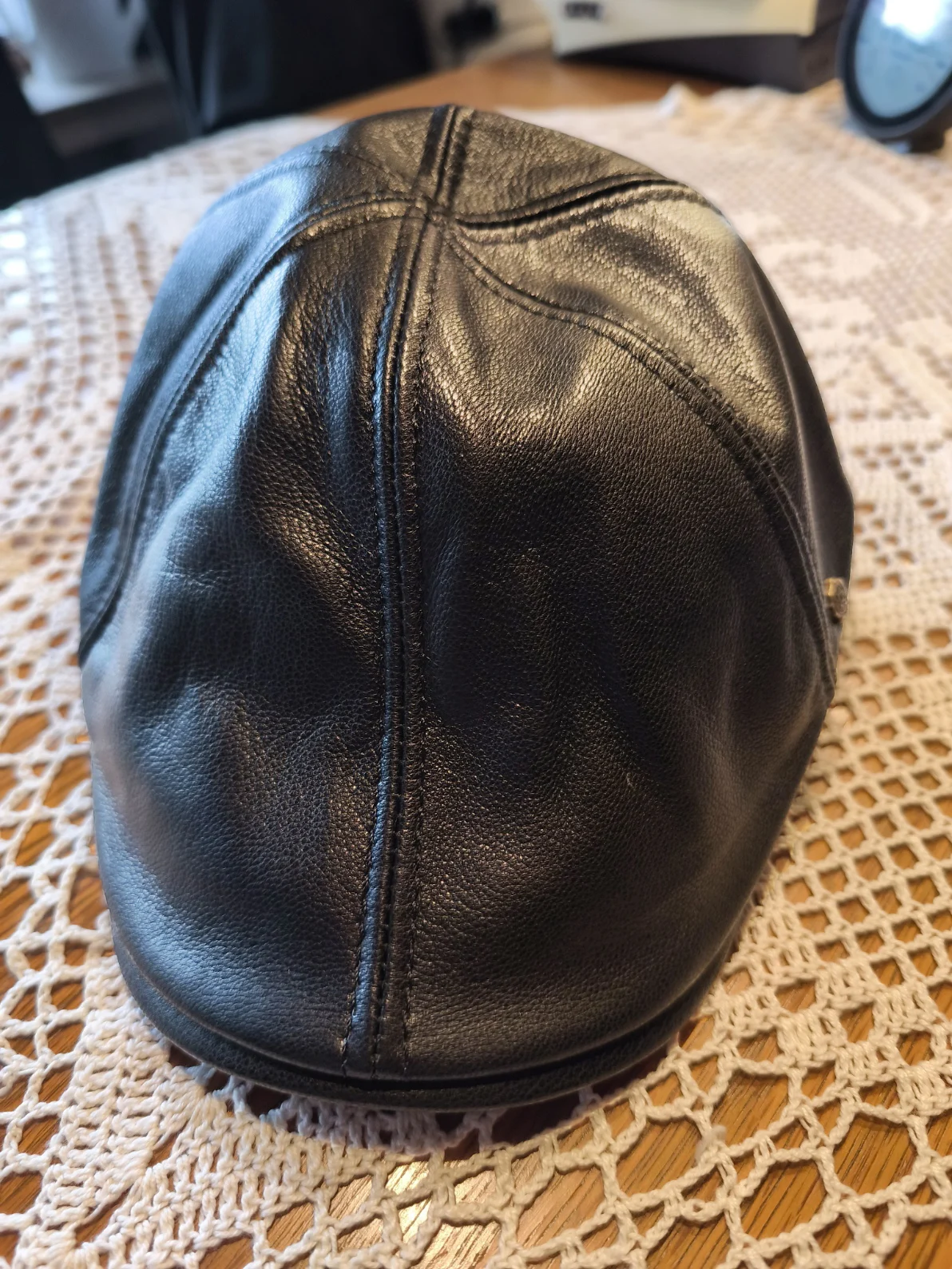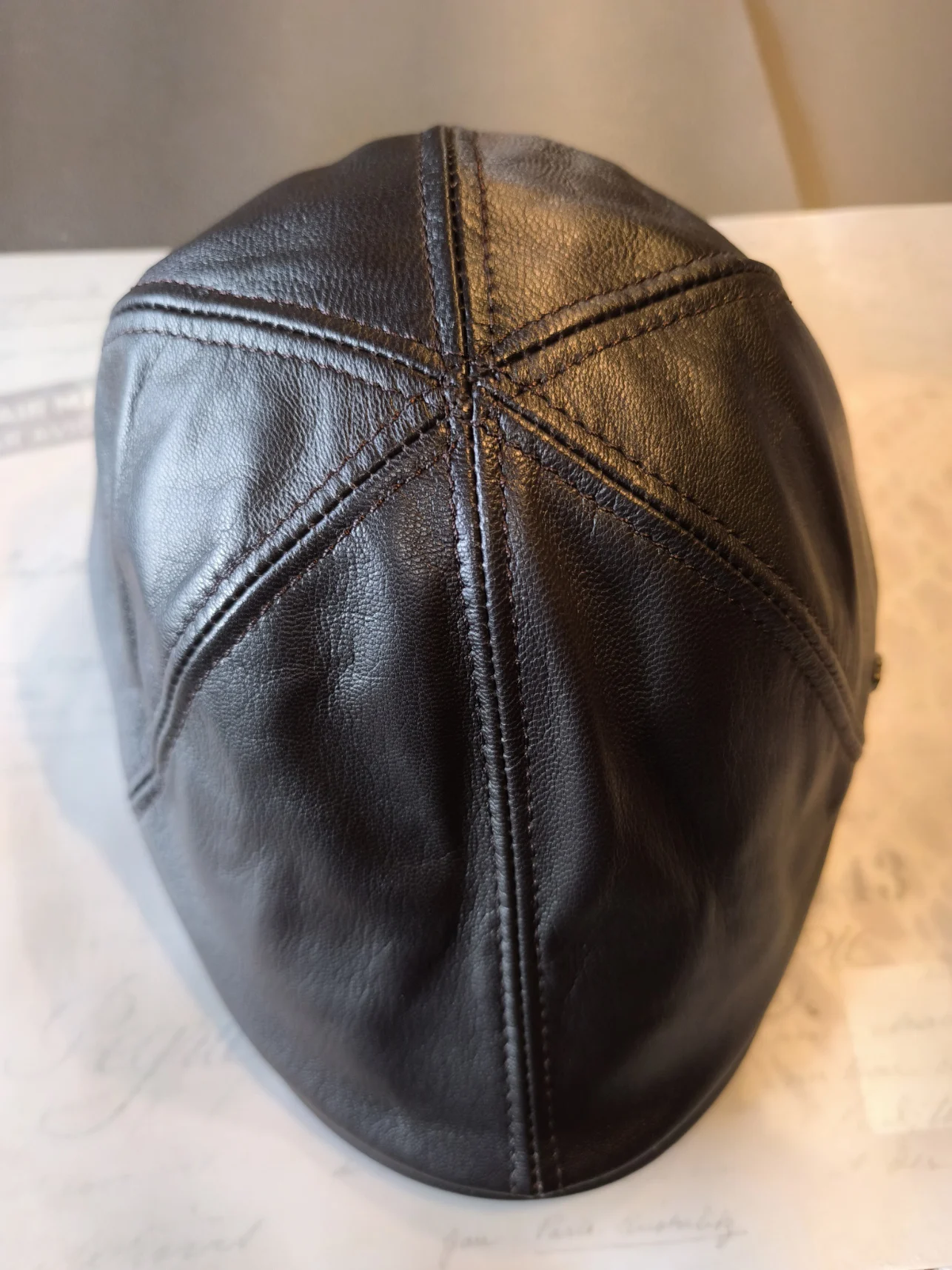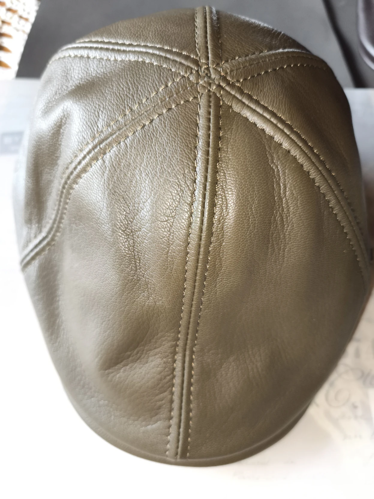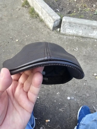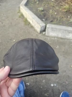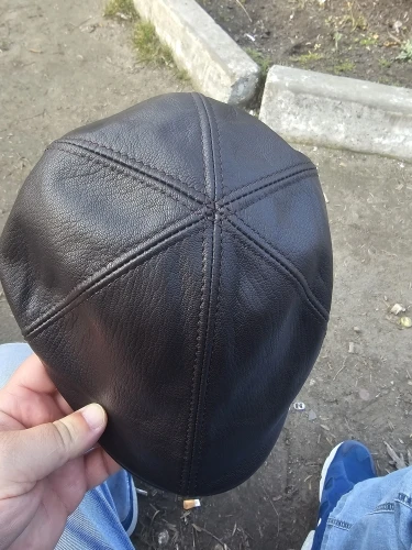Fast shipping and delivery. The cap is made of leather. The stitching is generally fine. But! There are 2 issues: 1. It runs about 0.5 cm small; 2. The top seam in the front is not in the middle of the visor, but slightly curved to the right, as you can see in the photo (maybe I got a slightly defective product). But overall, I recommend the seller and the product.