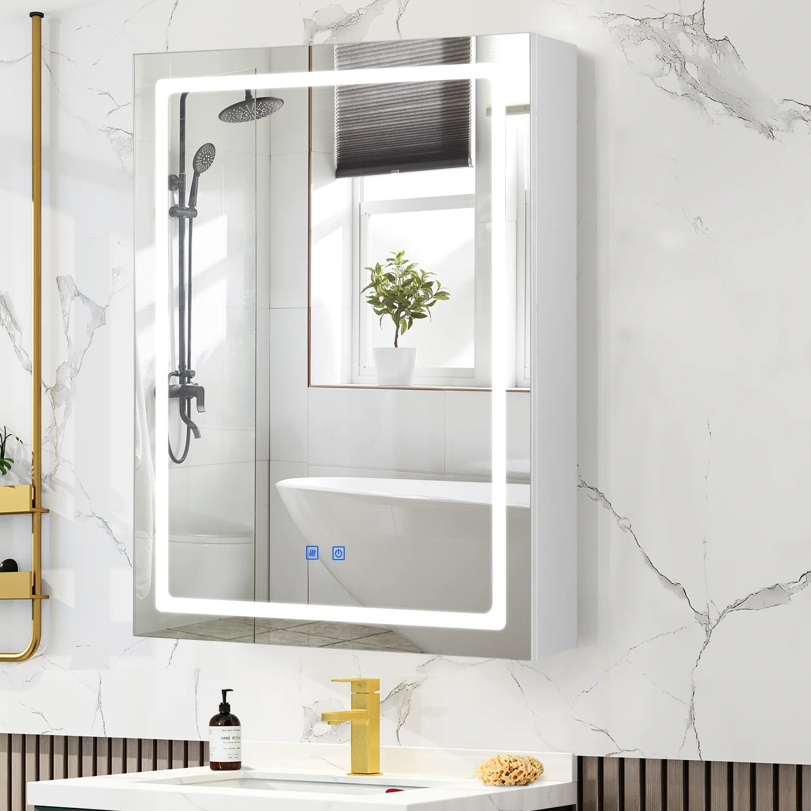 WHAT YOU'LL GET – A bathrooom medicine cabinet with a vanity mirror combining LED lights and efficient defogger. The mirror built in 2 touch sensors to control backlit and demist function. An ideal solution for storing, demisting, and illumination in the bathroom.