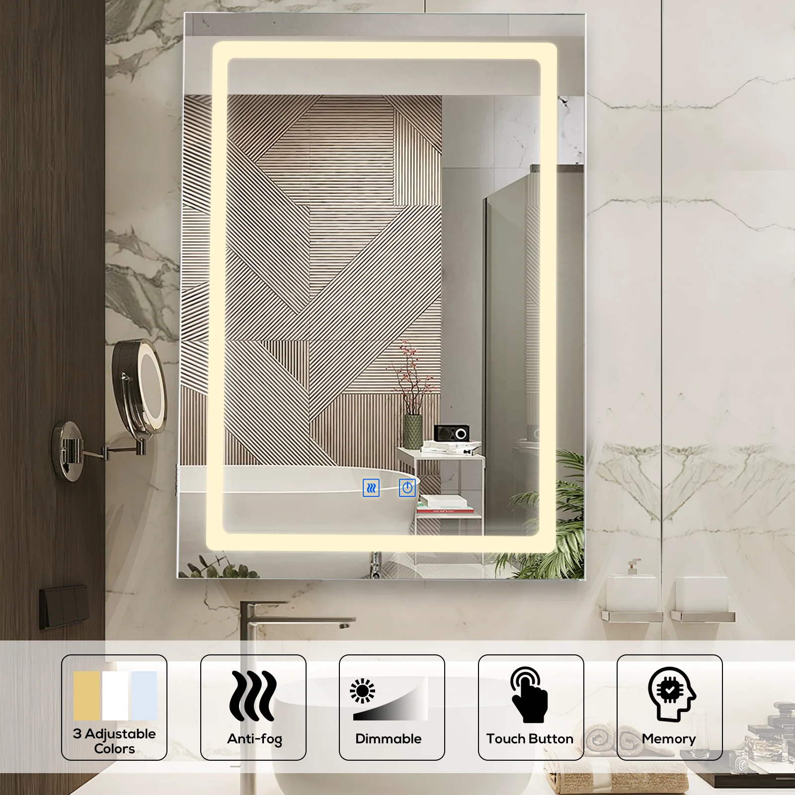 ADJUSTABLE LED BACKLIT – Short press the light button to choose 3 color mode (cool, natural, warm). Long press to activate dimmer to change brightness. Functional enough for you to do makeup, skin care, shaving, or dressing up in the bathroom.