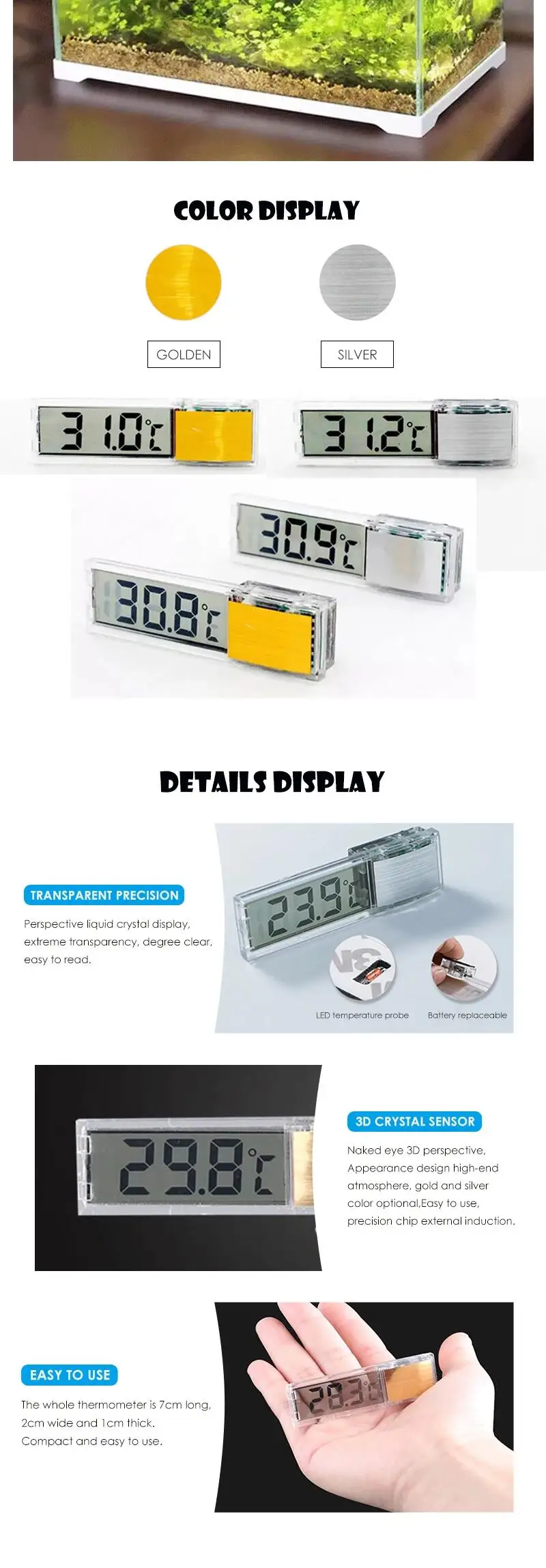 -Package Included: 2Pcs LCD 3D Digital Electronic Temperature Measurement Fish Tank Temp Meter Aquarium Thermometer Temperature Control Accessories(If there are any problems with the product, please send us pictures.Tell us more details about this problem.)