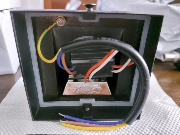 The housing just fits a normal wall mounting box as used in many countries in Europe. These boxes are approximately 70 mm and with a little bit of damage around them, you should expect 75 mm.