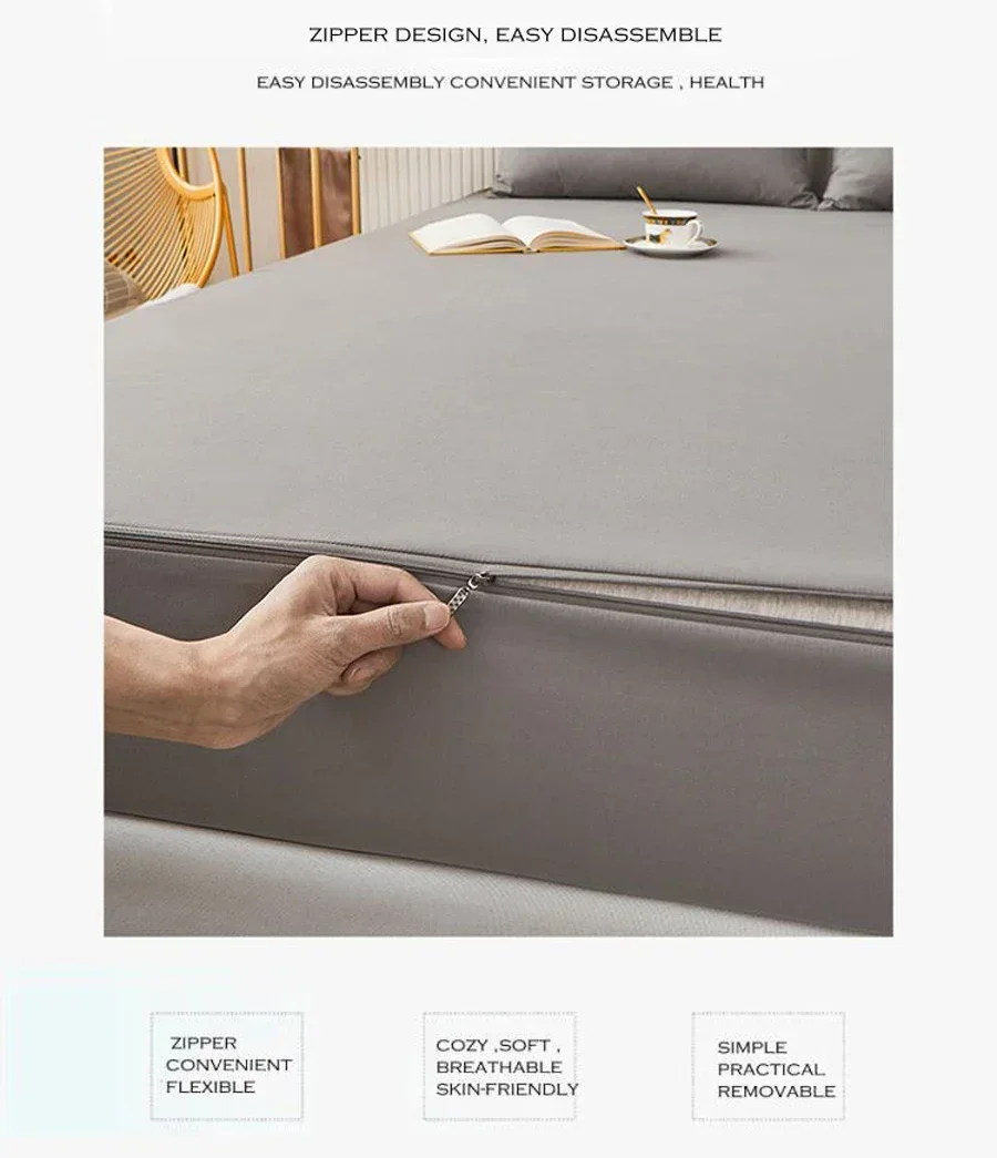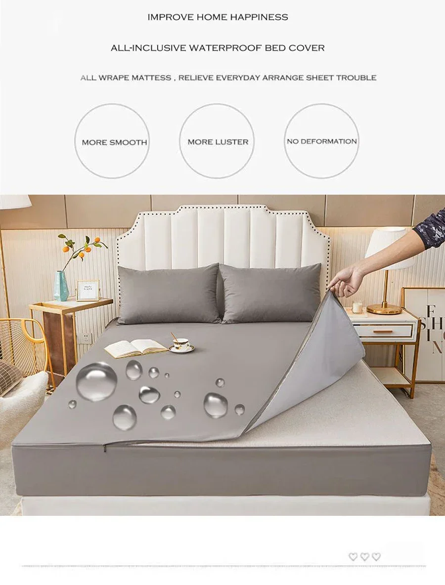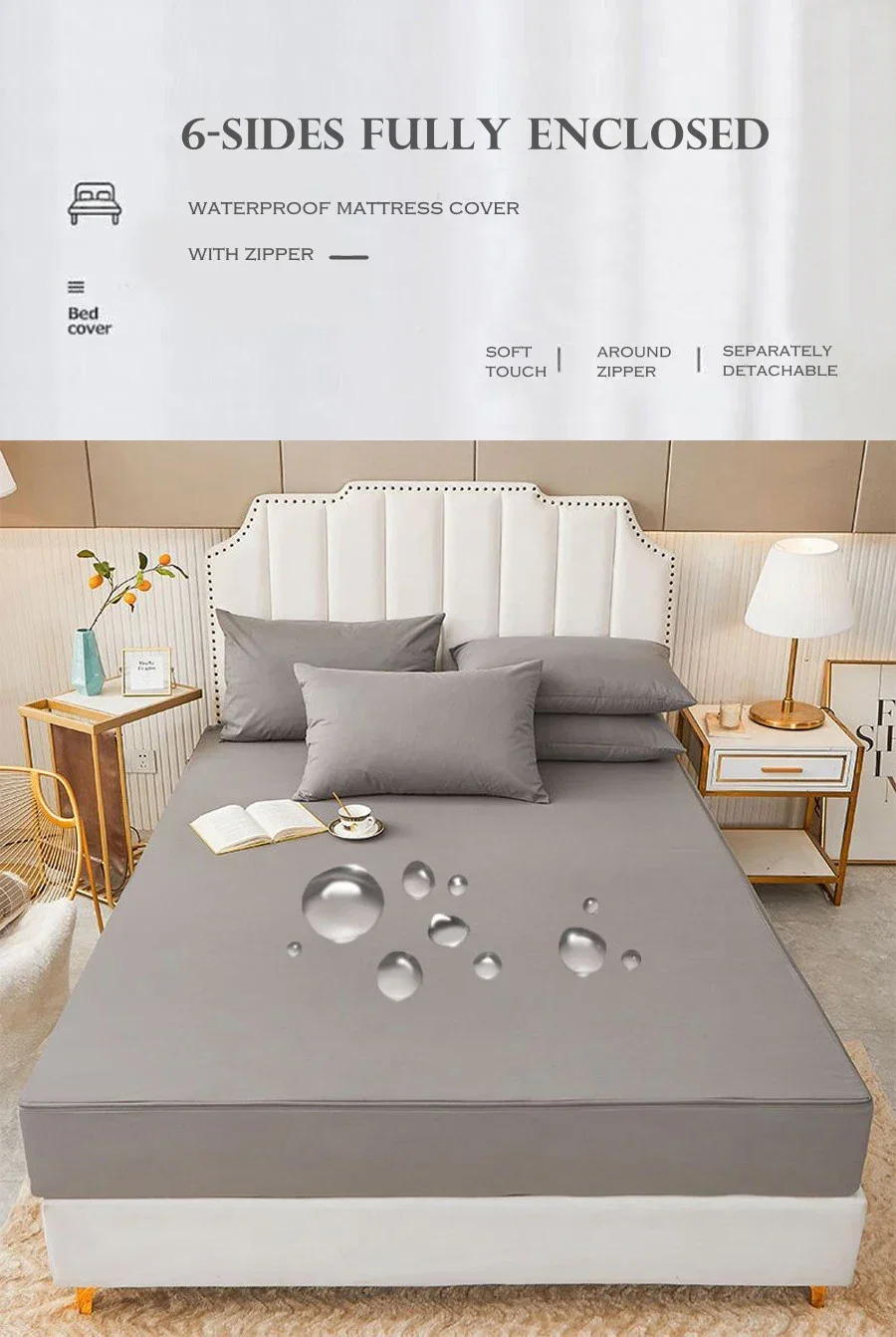 Waterproof Mattress Cover with Zipper 6-Sides All Inclusive Mattress Protector Bed Cover Anti-slip Fitted Bed Sheet Customizable
