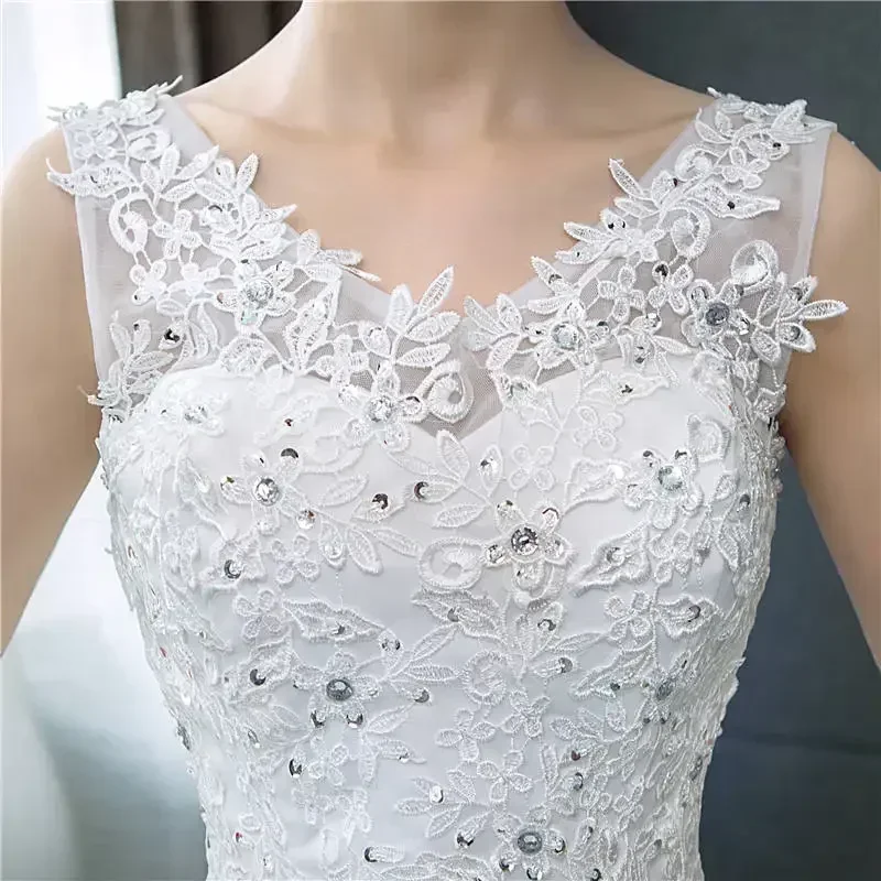 Wedding Dresses Pure White V-neck Appliques Sequined Sleeveless Princess Floor Length Plus size Wedding Gowns De Novia HS288