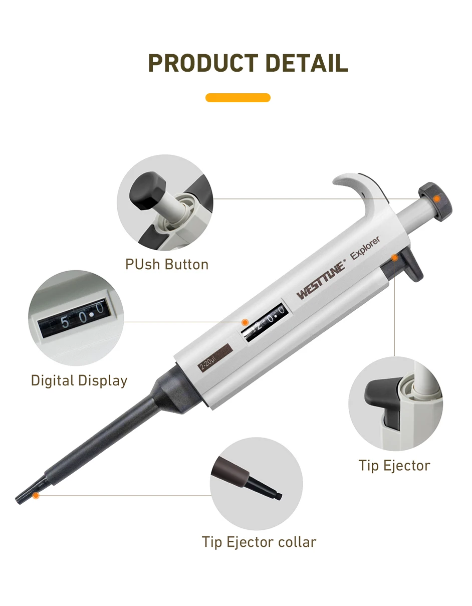 20 reviews for WESTTUNE Laboratory Micro Pipette Gun Lab Single Channel Pipettor Digital Adjustable Plastic Pipette Half Autoclavable with Tip