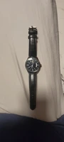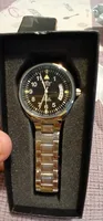 Great watch. Arrived quickly and as advertised. Keeps very good time and looks better than in the photos. I changed the band to a stainless band which is much better.