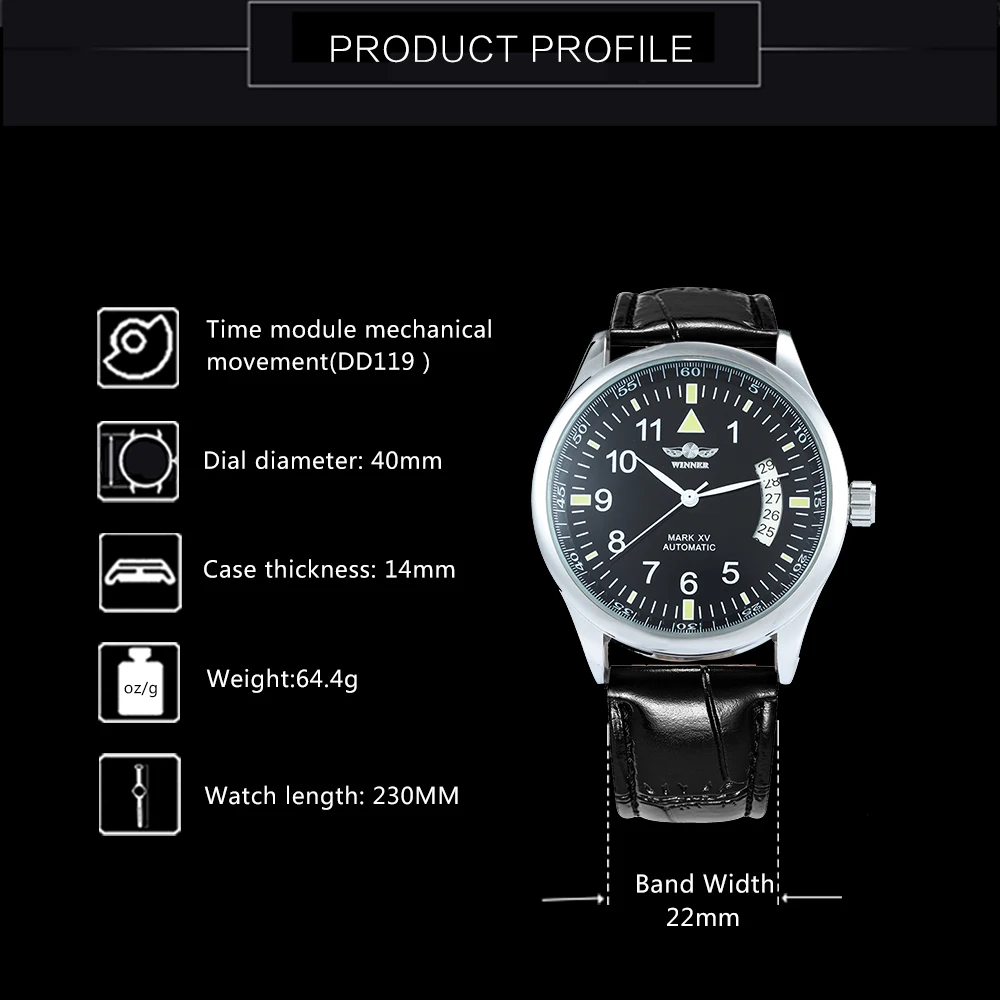 20 reviews for WINNER Business Automatic Watch for Men Calendar Window Fashion Black Dial Fashion Leather Strap Luxury Brand Mechanical Watches