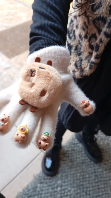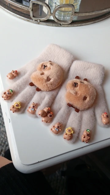 Gloves are lovely. Very good quality material. Capybaras are cute.