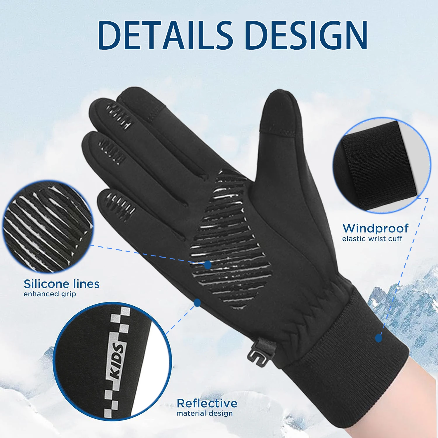 Winter Children’s Gloves Padded Warm Wind Cold Riding Gloves Touch Screen Non-slip Waterproof Ski Gloves Outdoor Sports Gloves