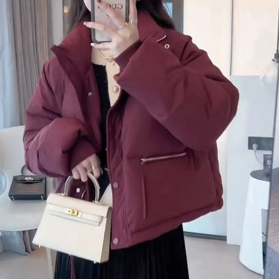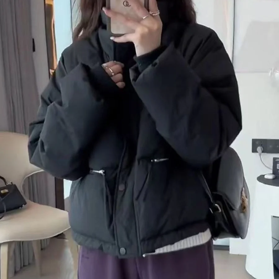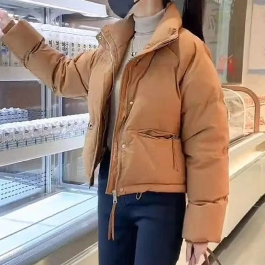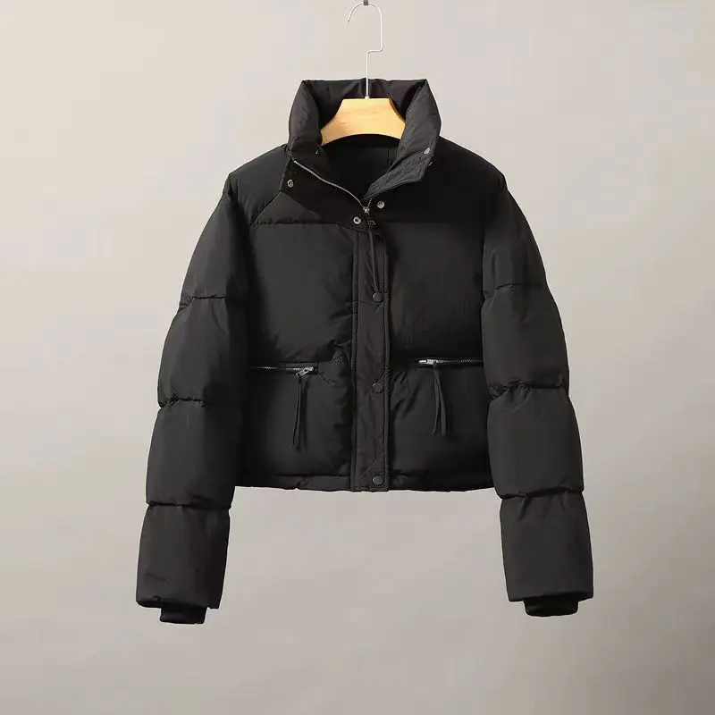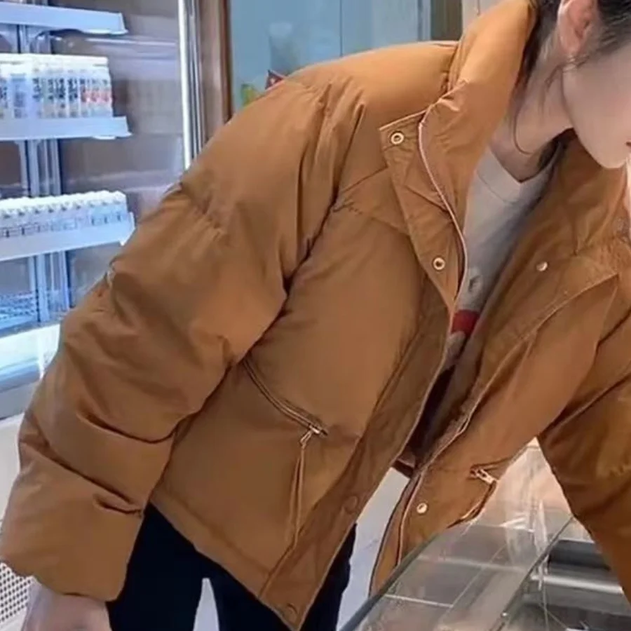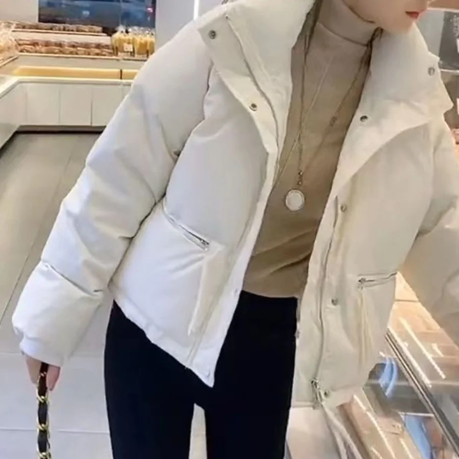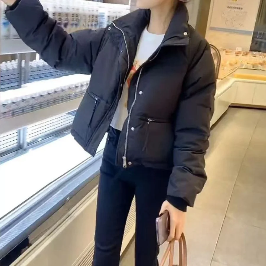 Winter Fashion Short Padding Jacket Women Cotton Coat Stand Collar Classic Solid Parkas Puff Jackets Casual Sweet All-Match Coat