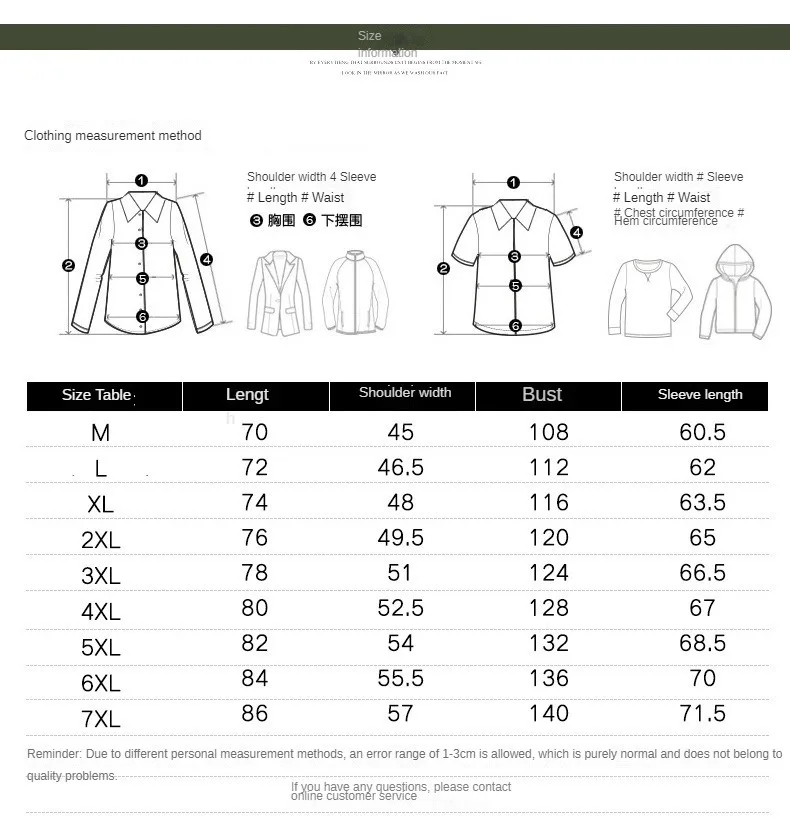 | Size | S | M | L | XL | XXL | 3XL | 4XL | 5XL | 6XL | 7XL |
