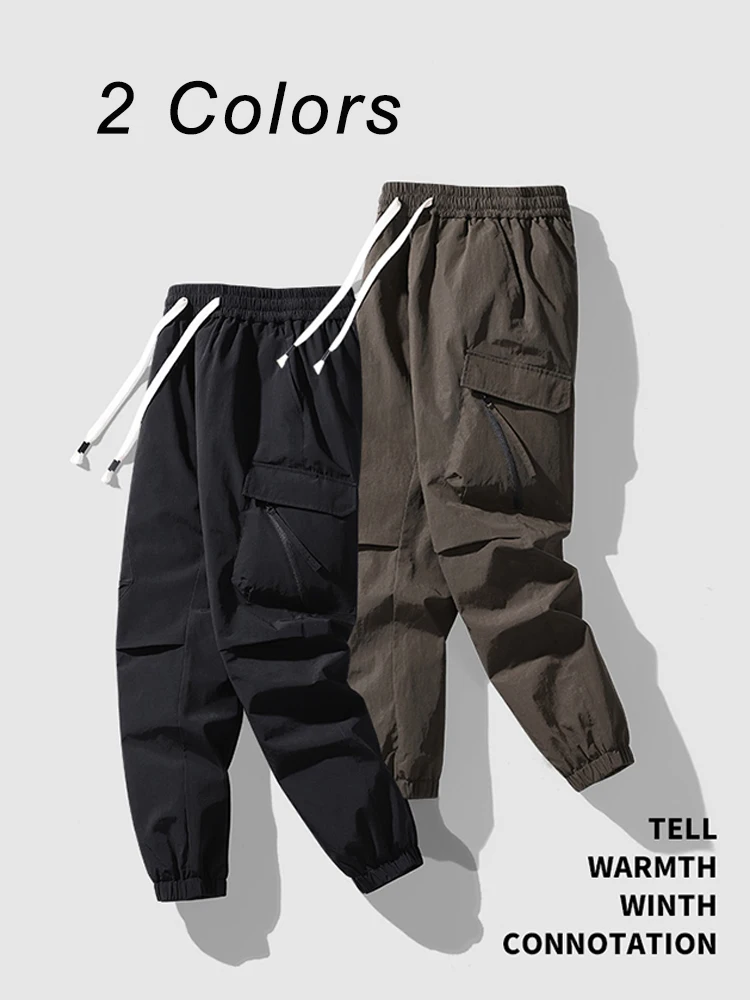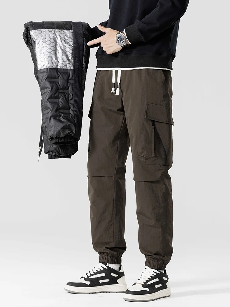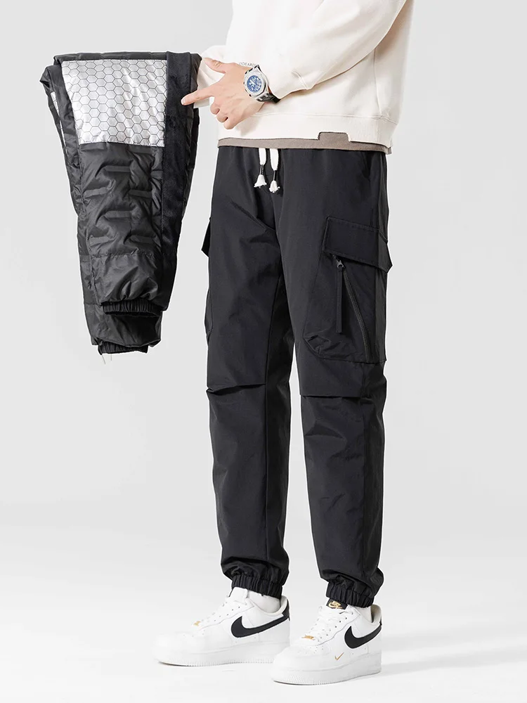 Winter Men's Jogger Puffer Pants 90% White Duck Down Padded Muti-Pockets Thick Warm Cargo Pants Male Windproof Thermal Trousers