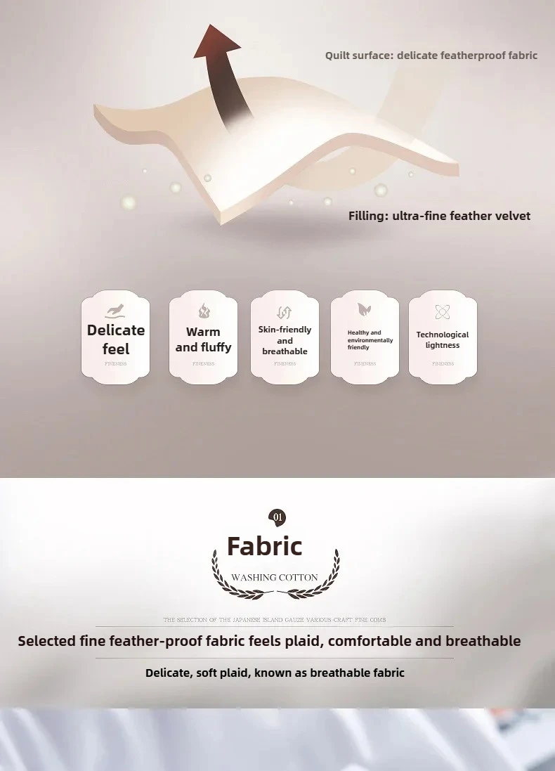 Selected fine feather-proof fabric feels plaid, comfortable and breathable