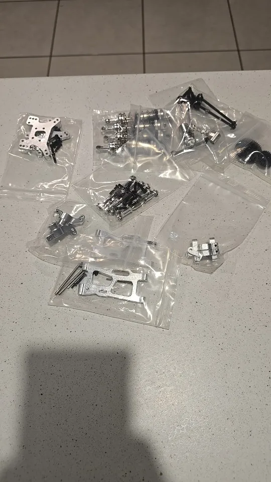 I ordered two complete kits and everything arrived correctly, both in terms of quality and description, as well as the speed of shipping. A piece of advice for those looking to build their RC from scratch: this kit is for upgrading a 1:12 or 1:14 WLT Toys model. To have it complete, you only need the chassis and the complete transmission (minus motor gears and reduction). and the base of the differential boxes. . All of this is found together in a complete aluminum kit and they usually appear very cheap. The second thing is the heart of the car (Engine, ESC, and Radio Control) according to your needs, you can get it for as little as €30, whatever you want to spend.