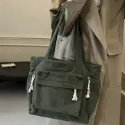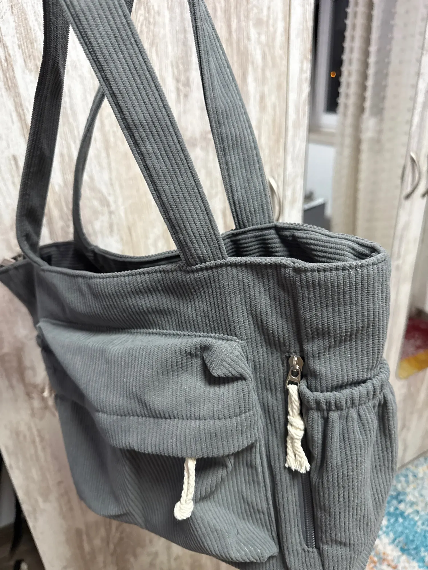 Women Casual Corduroy Shoulder Bag Travel Master Multi Pocket Tote Solid Color