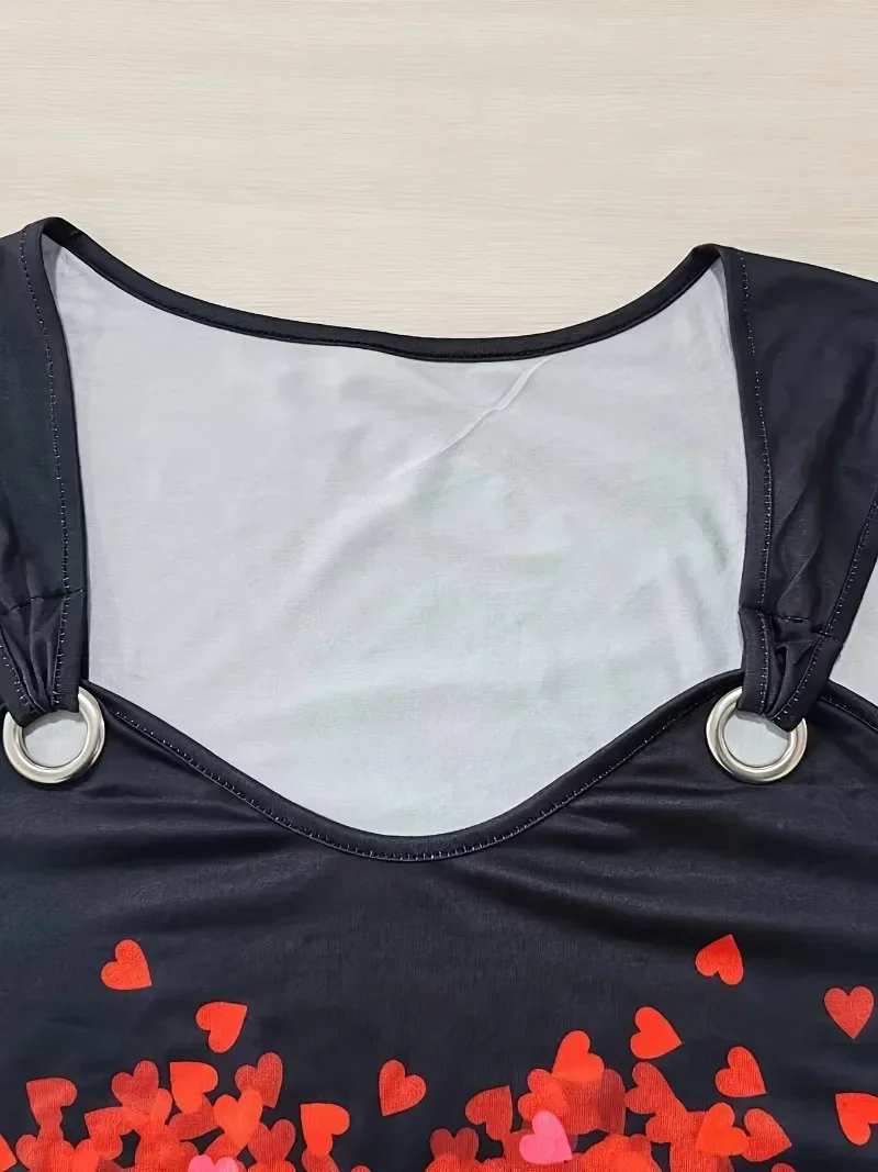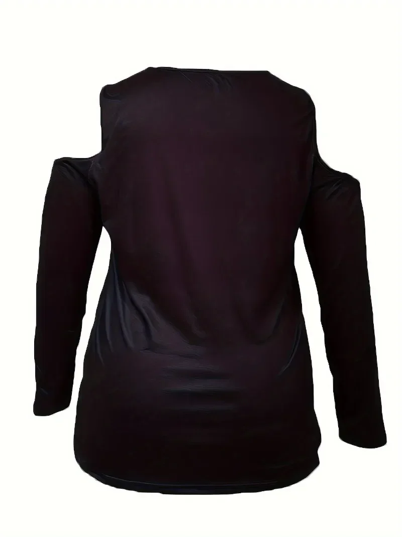 Women Fashion Plus Size 1XL-5XL T-shirt Women’s Sexy Off The Shoulder Long Sleeved T-shirt Ladies Love Printed Fashion Top