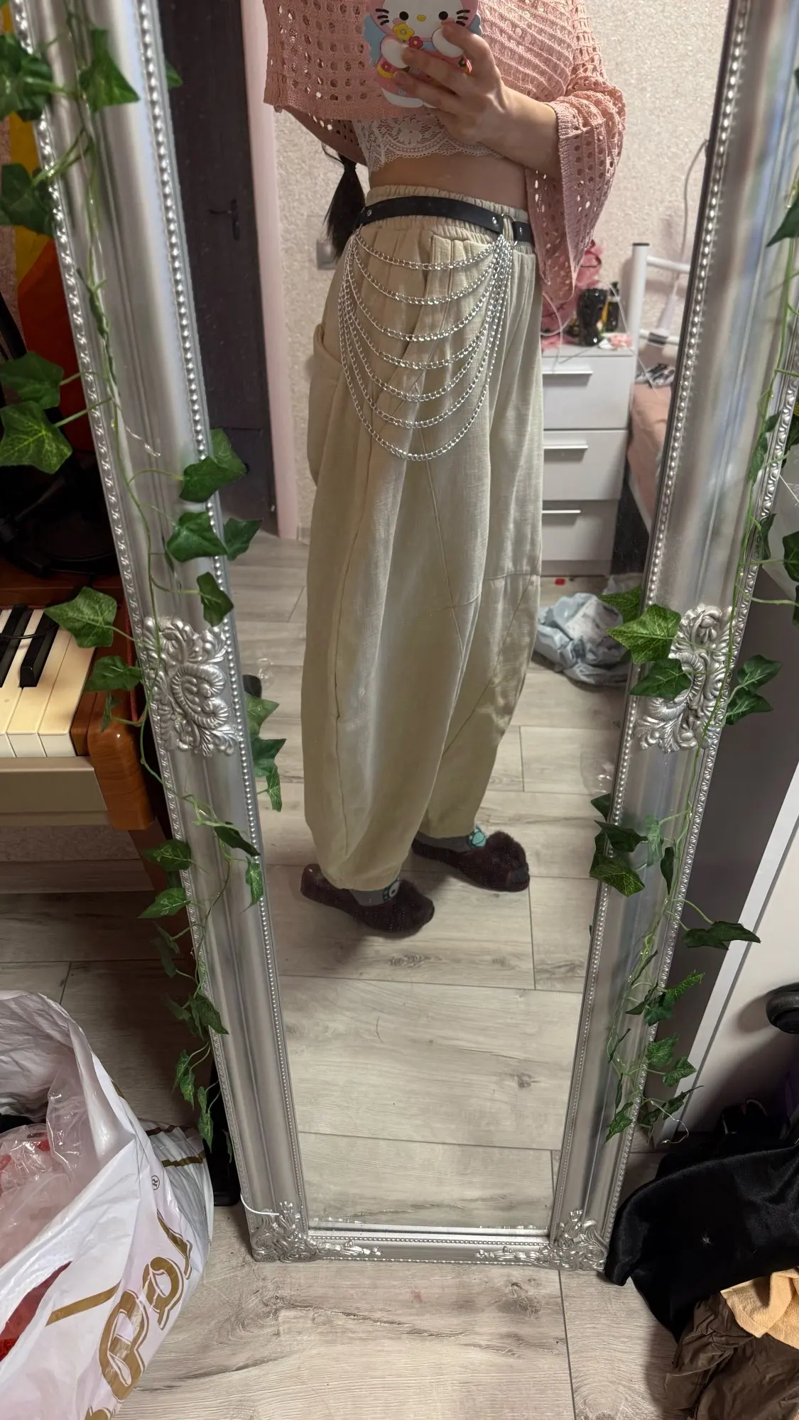In real life, it’s just a covered belt with chains, high quality. Looks cool, fast delivery. I recommend it.