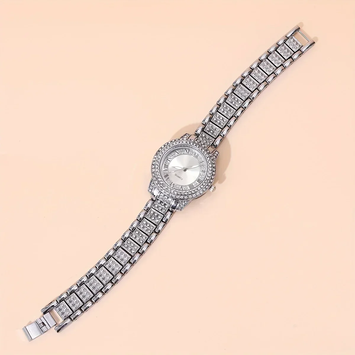 Women Watches Golden Tone Alloy Quartz Watch Stylish Rhinestone Bling Dress Watch Wristwatches, For Xmas
