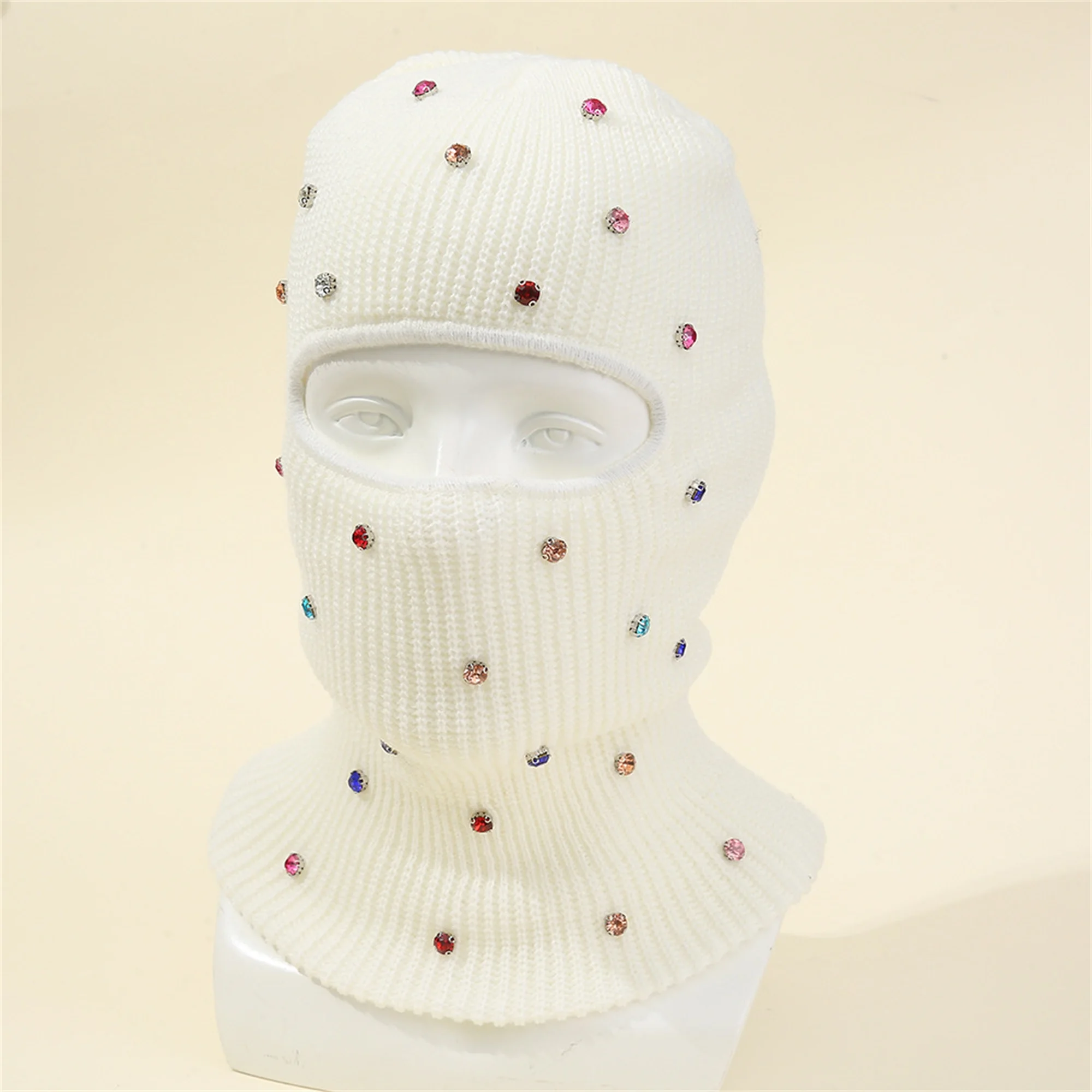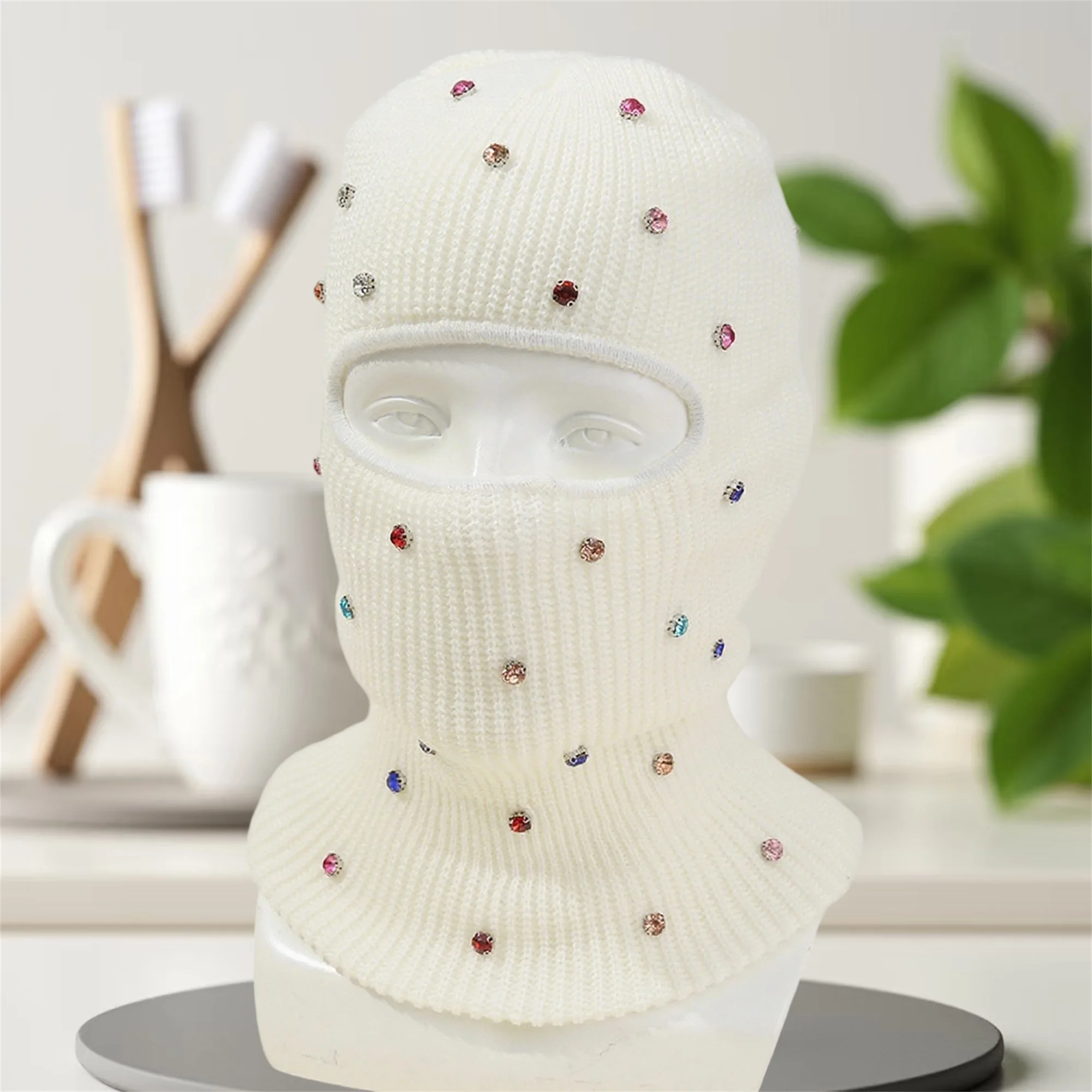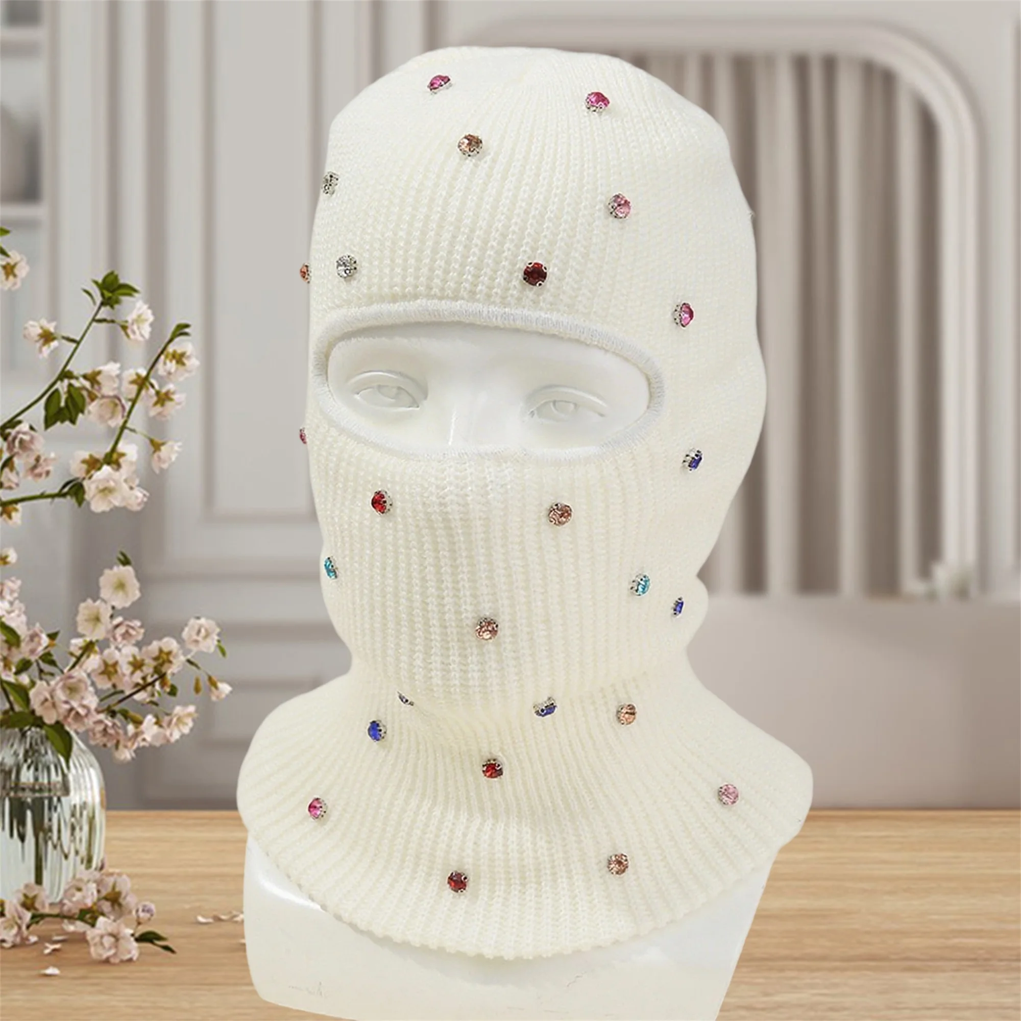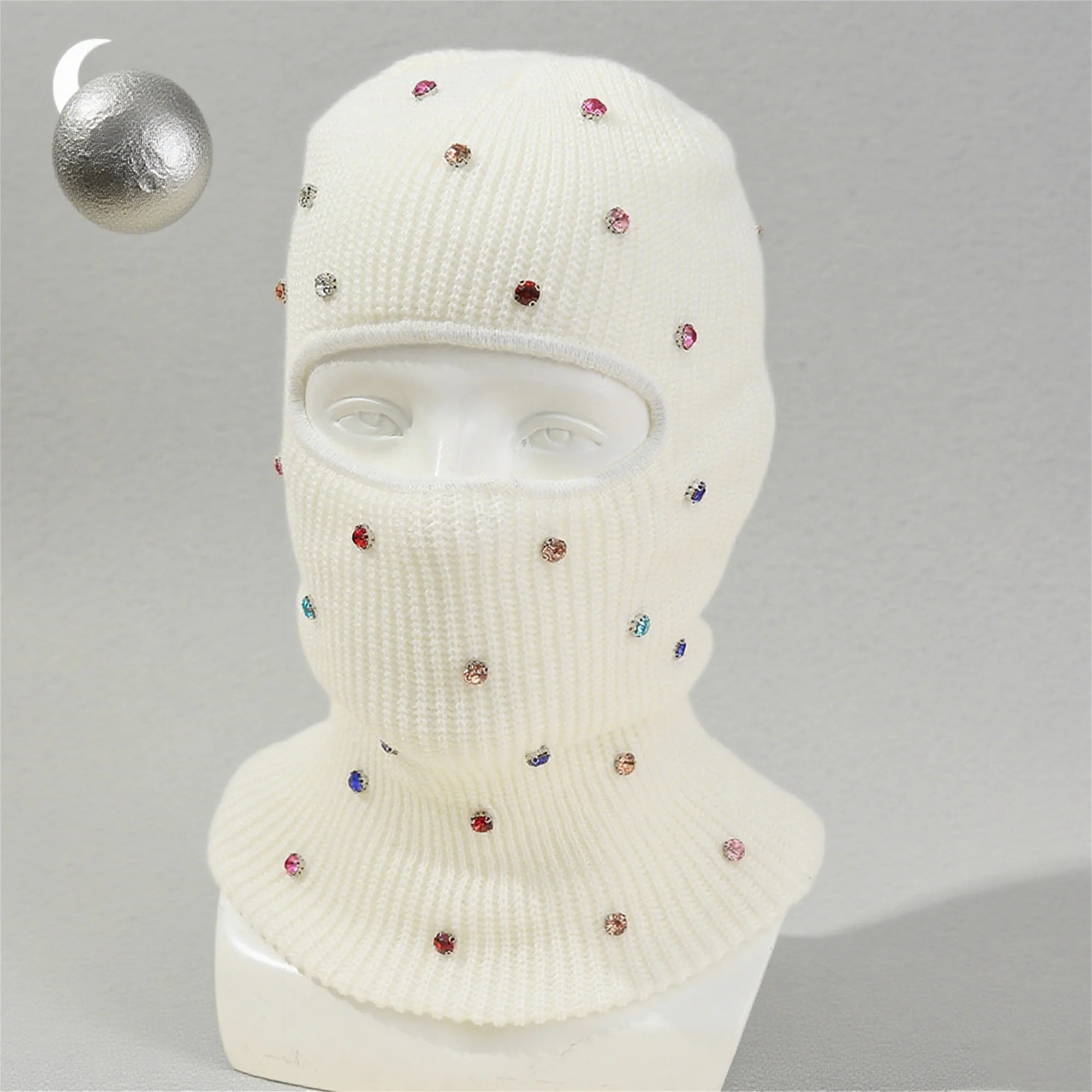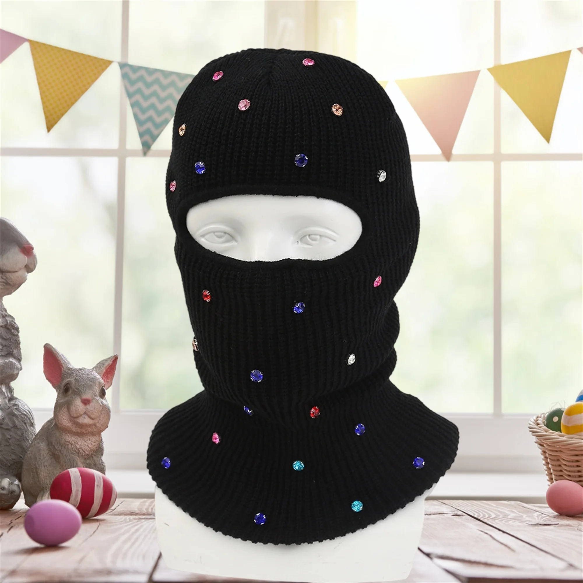 Women Winter Hat, Shiny Rhinestones Soft Warm Windproof Full Wrap Ski Hat Knit Balaclava