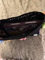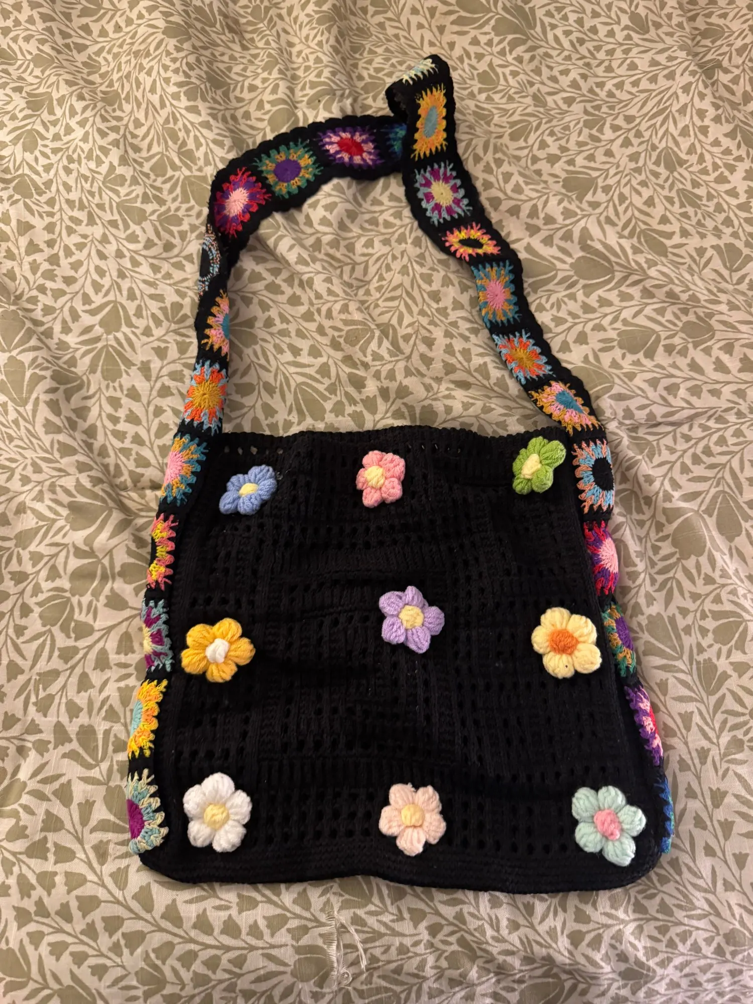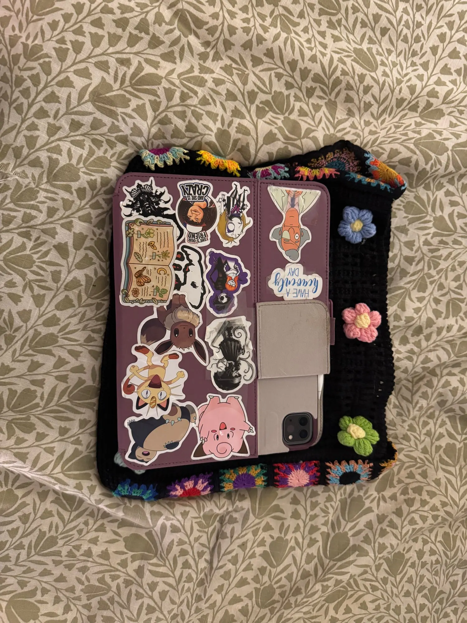 Really cute, it fits a lot inside. It can hold my 11-inch ipad, my phone, and a lot of other stuff. It’s super cute as well and well-made
