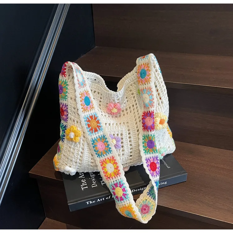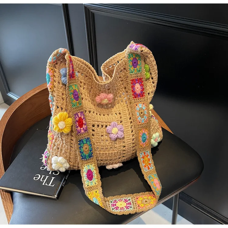 14 reviews for Women’s Boho Crochet Bag Designer Flowers Knitted Handbags Large Capacity Summer Beach Woven Shoulder Bag Girls Tote Shopper Bag