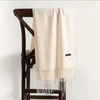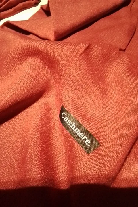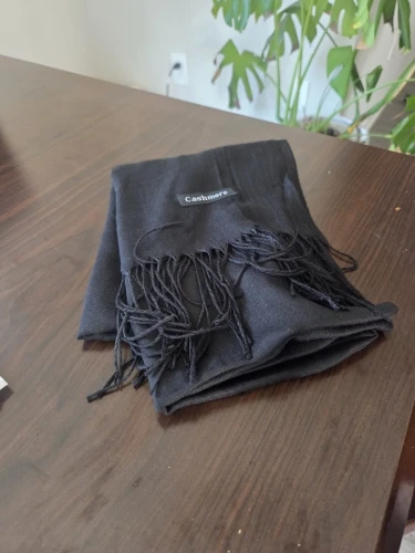 This is the second scarf like this i bought. I love it! Its not super thick and the “cashmere” label is just a sticker but its a great classic black scarf