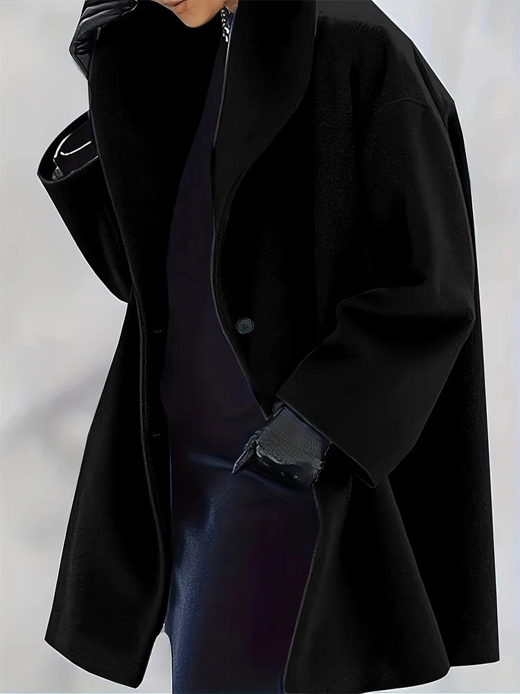 Women's Plus Size Coat Single Breasted Notched Lapel Elegant Long Winter Coats Solid Color Long Sleeve Coat for Women 2023