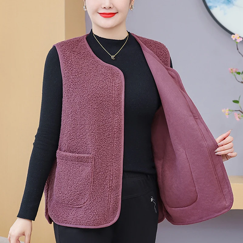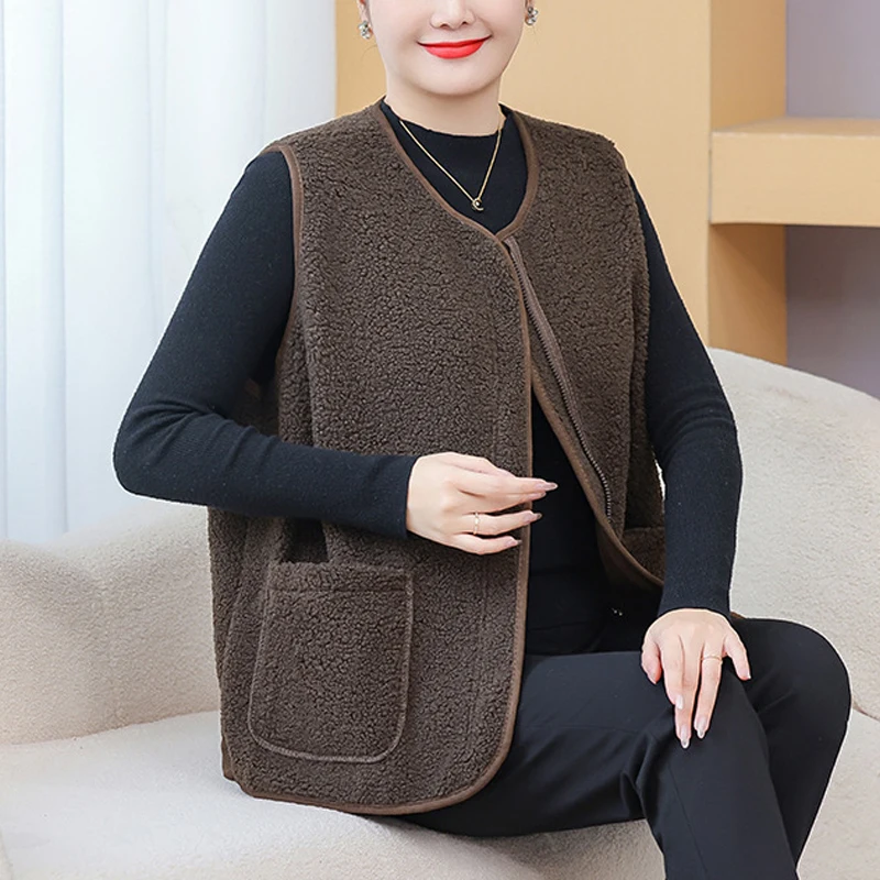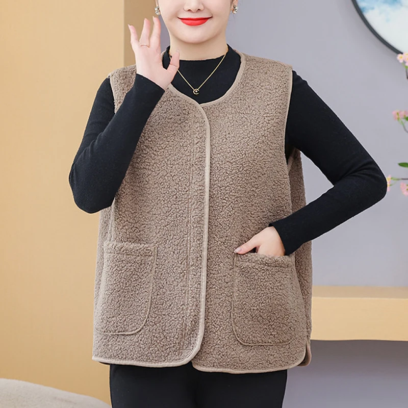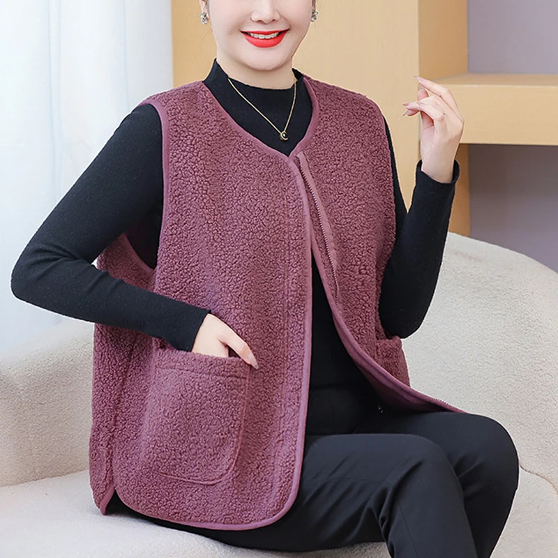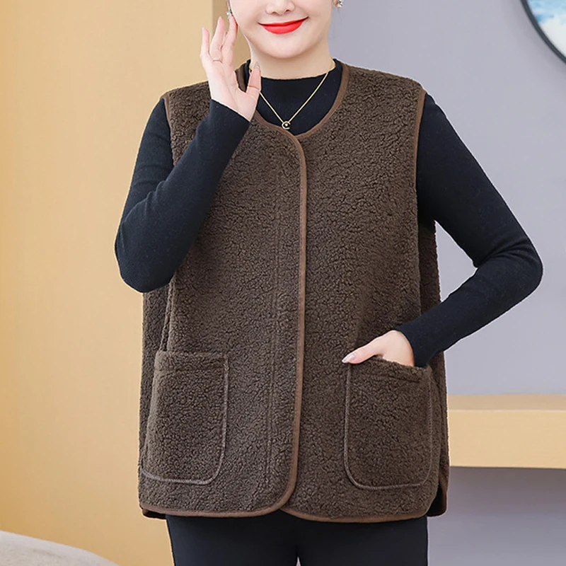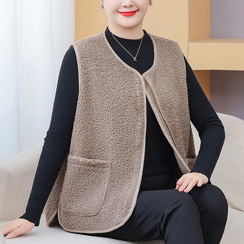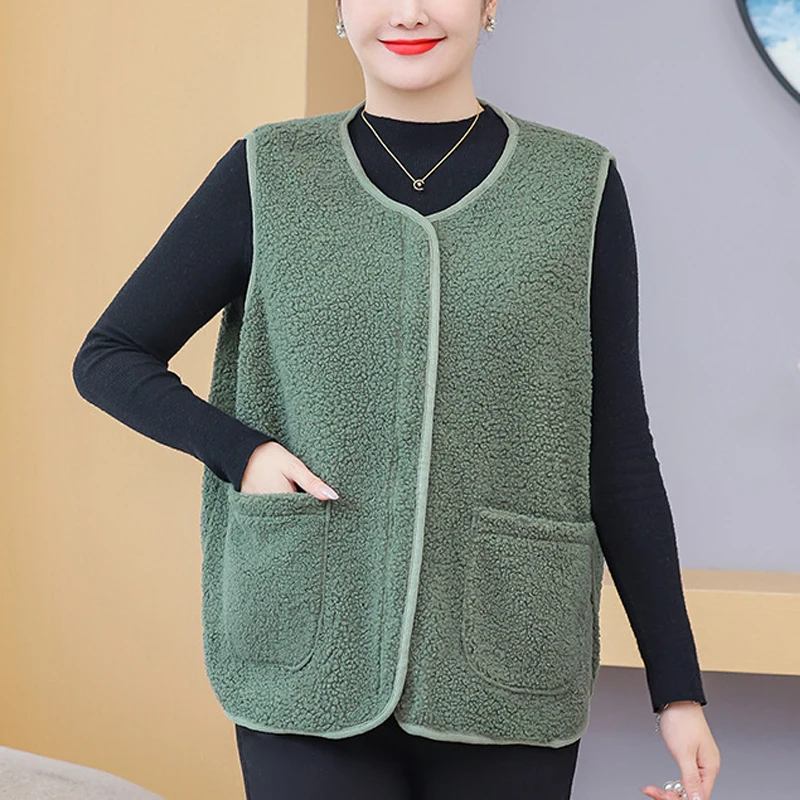 Womens Plus Size Fleece Jacket Autumn Casual Clothing Senior Sleeveless Vest Fashion Big Pocket Outwear Curve Coats T84 2363