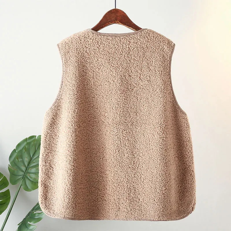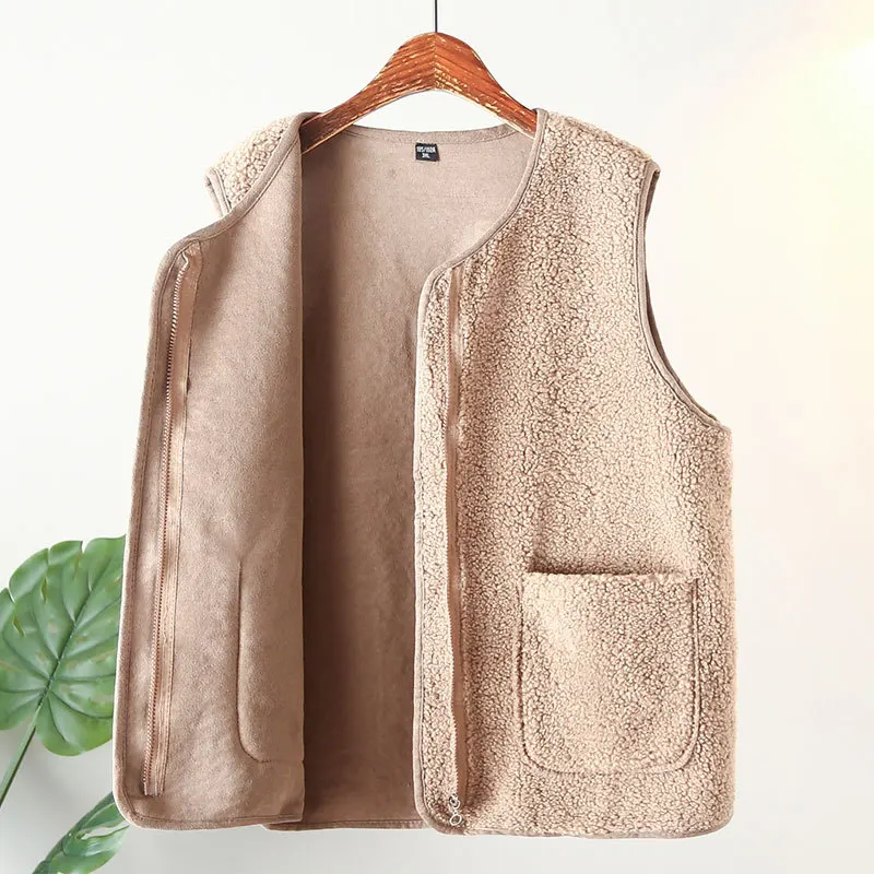 Womens Plus Size Fleece Jacket Autumn Casual Clothing Senior Sleeveless Vest Fashion Big Pocket Outwear Curve Coats T84 2363