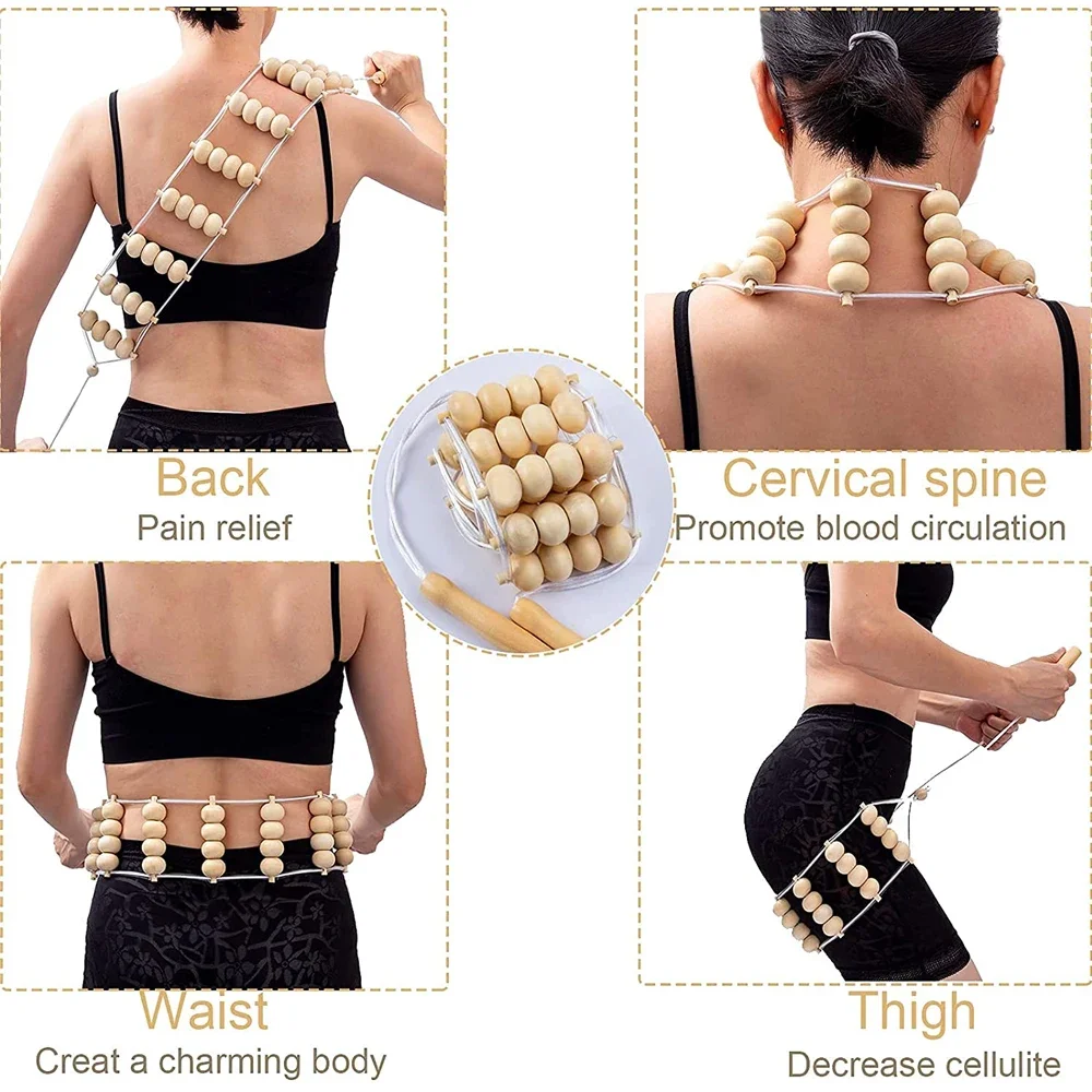 Wood Therapy Massage Tools,Wood Back Massager Roller Rope – for Body Shaping,Pain Relief,Wooden Therapy Lymphatic Tool