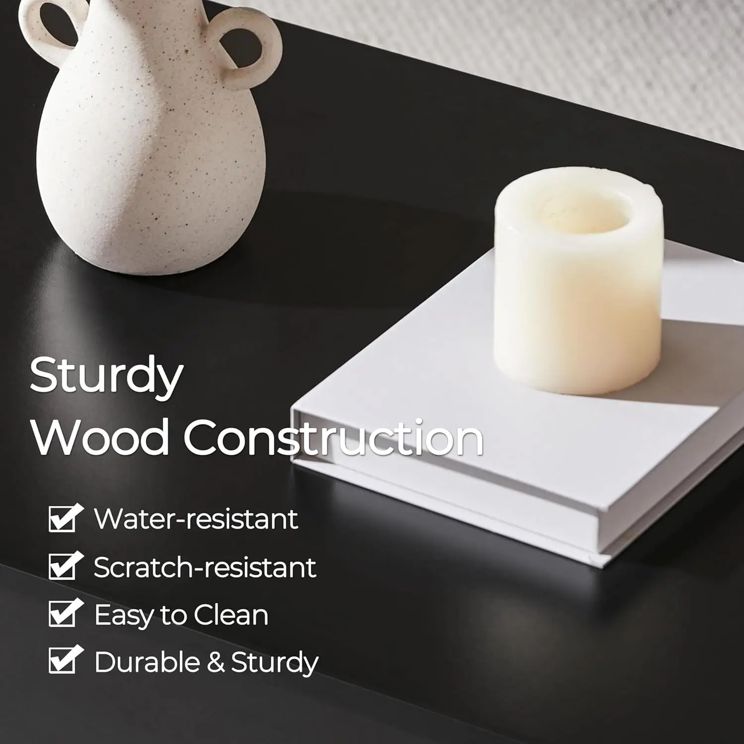 Solid table construction: lift top coffee table is constructed of CARB P2 compliant MDF finished with water-resistant veneer. With solid construction and selected materials, this coffee table will not wobble once correctly assembled