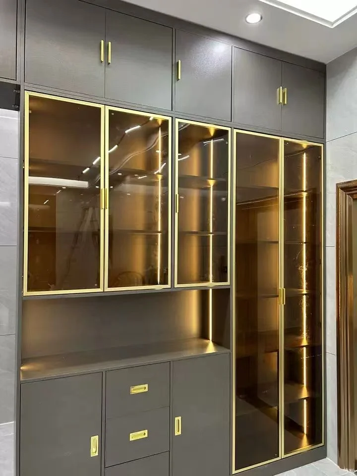 High-quality wine cabinet, solid wood material, color combination, especially attractive, comes with a sensor light. High-end visual atmosphere with no odor.