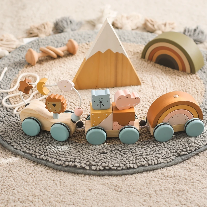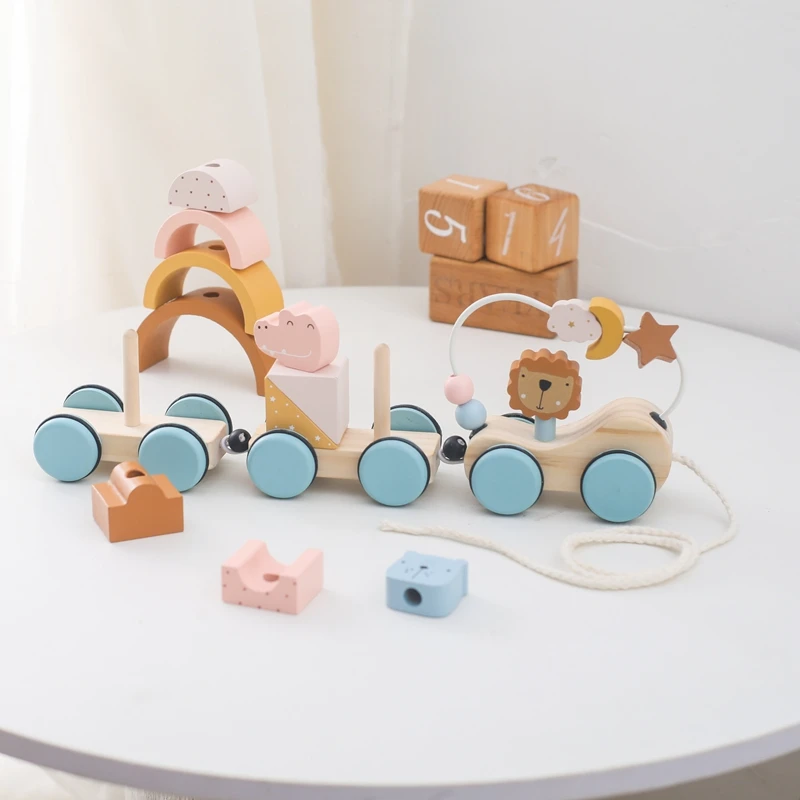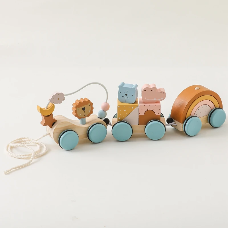 Wooden Baby Dragging Stars Moon Surround Car Beech Baby Toys Car Montessori Toys Hand Coordination Toy Handmade Decoration Gifts