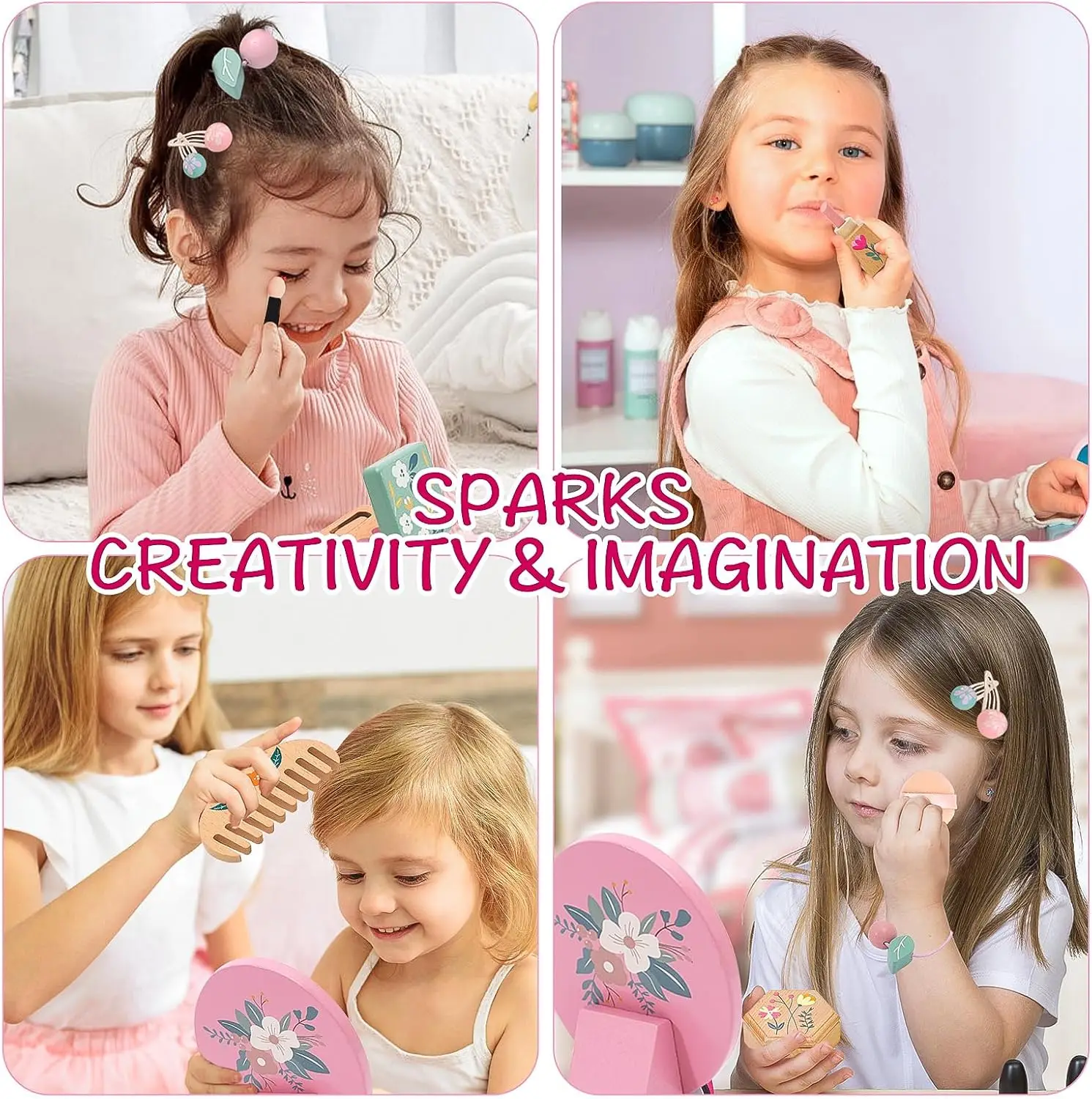 🌺 Educational and Fun: This wooden little girl makeup set offers excellent educational value. It not only encourages creative play, but also helps enhance motor skills, hand-eye coordination, and understanding of the world around them. This set is perfect for kids who love pretend play, makeup and being just like mommy!