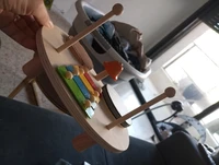 The size is small, and babies who can sit would like it. The downside is that when assembling, screws stick out at the bottom, which could hurt the baby. However, the screws are not sharp; it’s a wooden phone, so the sound is dull. That one is silver, what should I call that one? It almost sounds like a pot lid.
