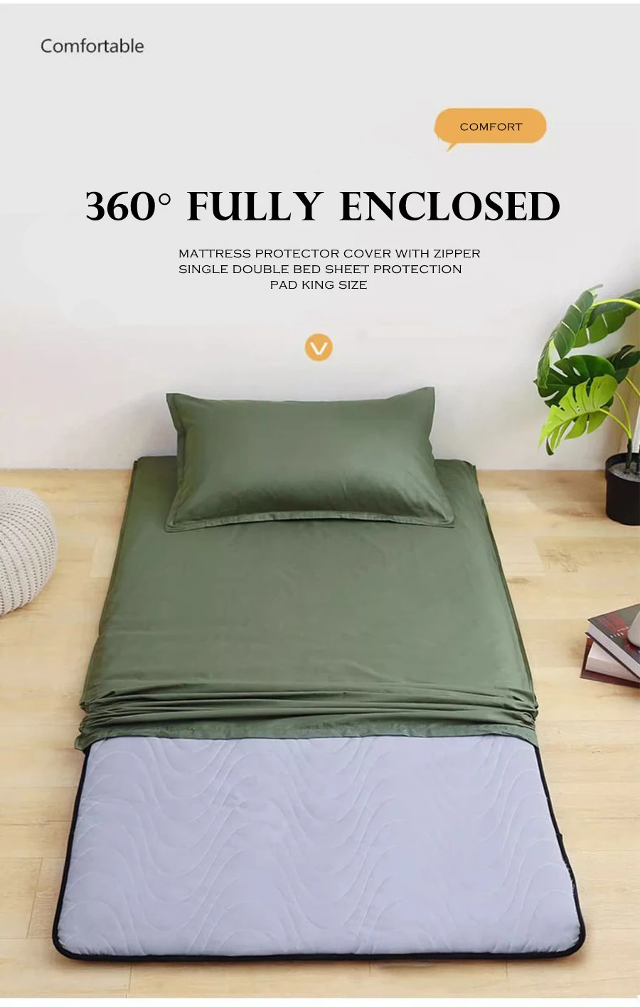 WOSTAR 360° fully enclosed with zipper mattress protector cover couple/student single double bed sheet protection pad king size