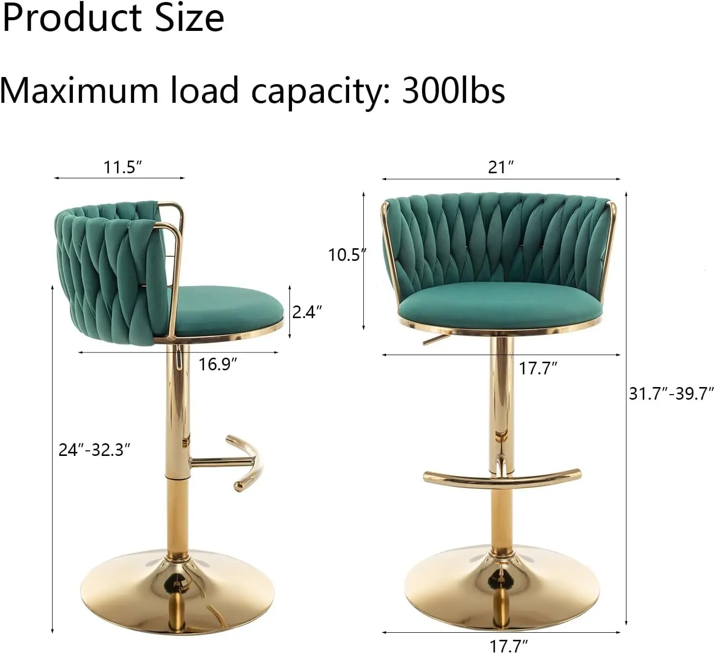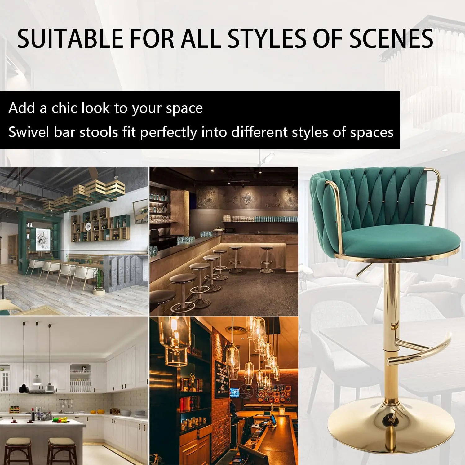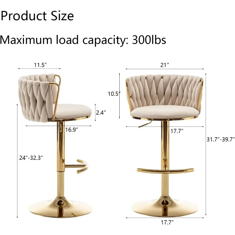 - Adjustable Height: These barstools can match kitchen islands and bars with a lift handle so different counter heights can be easily matched. The base swivels 360° for easy orientation changes.
