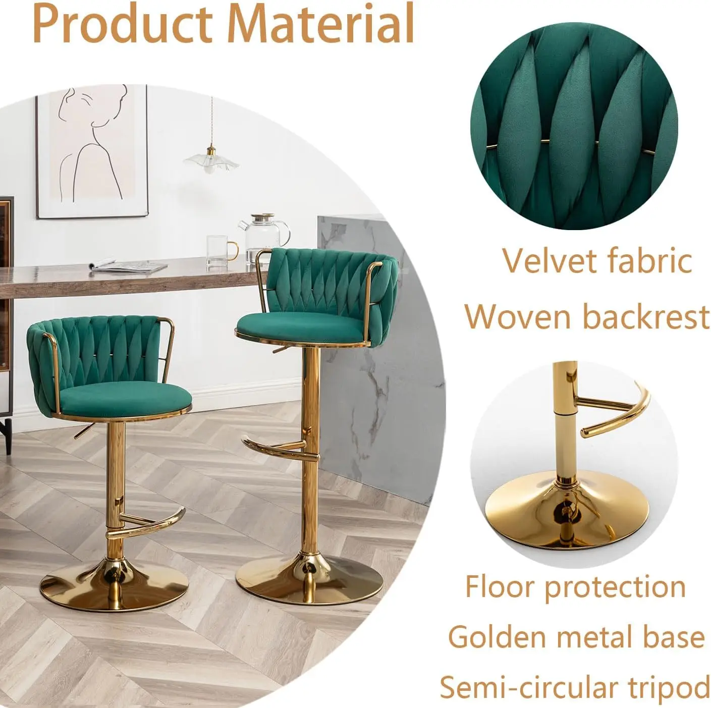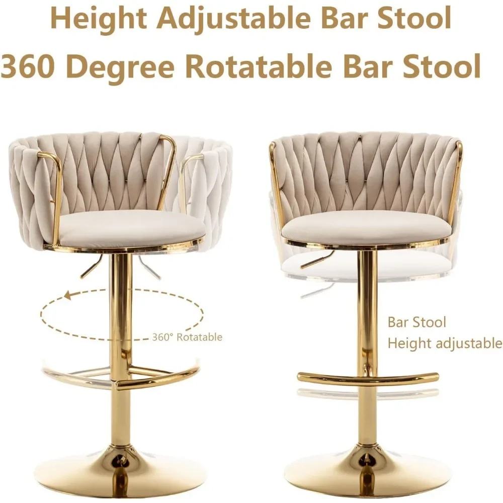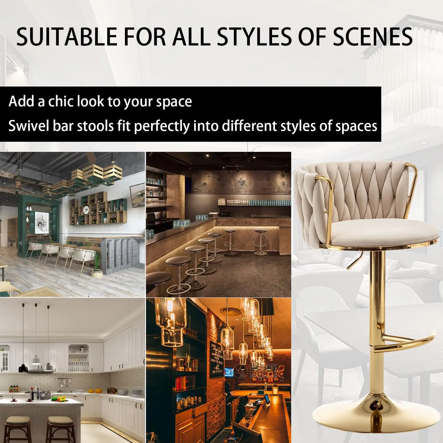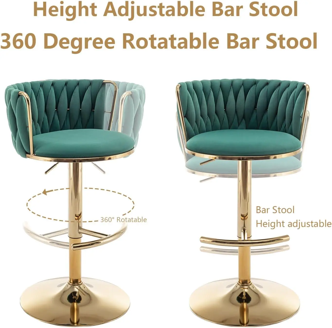 - Adjustable Height: These barstools can match kitchen islands and bars with a lift handle so different counter heights can be easily matched. The base swivels 360° for easy orientation changes.