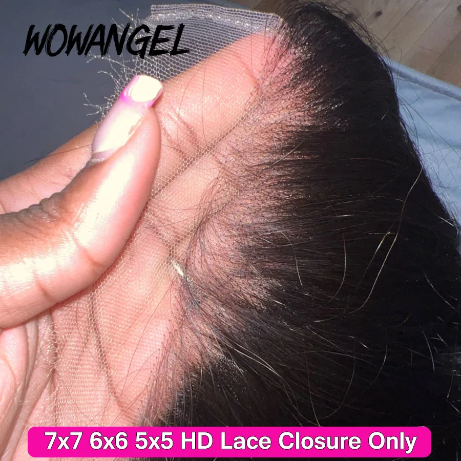 Wow Angel 7X7 6X6 5X5 HD Lace Closure Frontal Human Hair Straight Hair Melt Skins Pre Plucked HD Lace Closure Only Virgin Hair