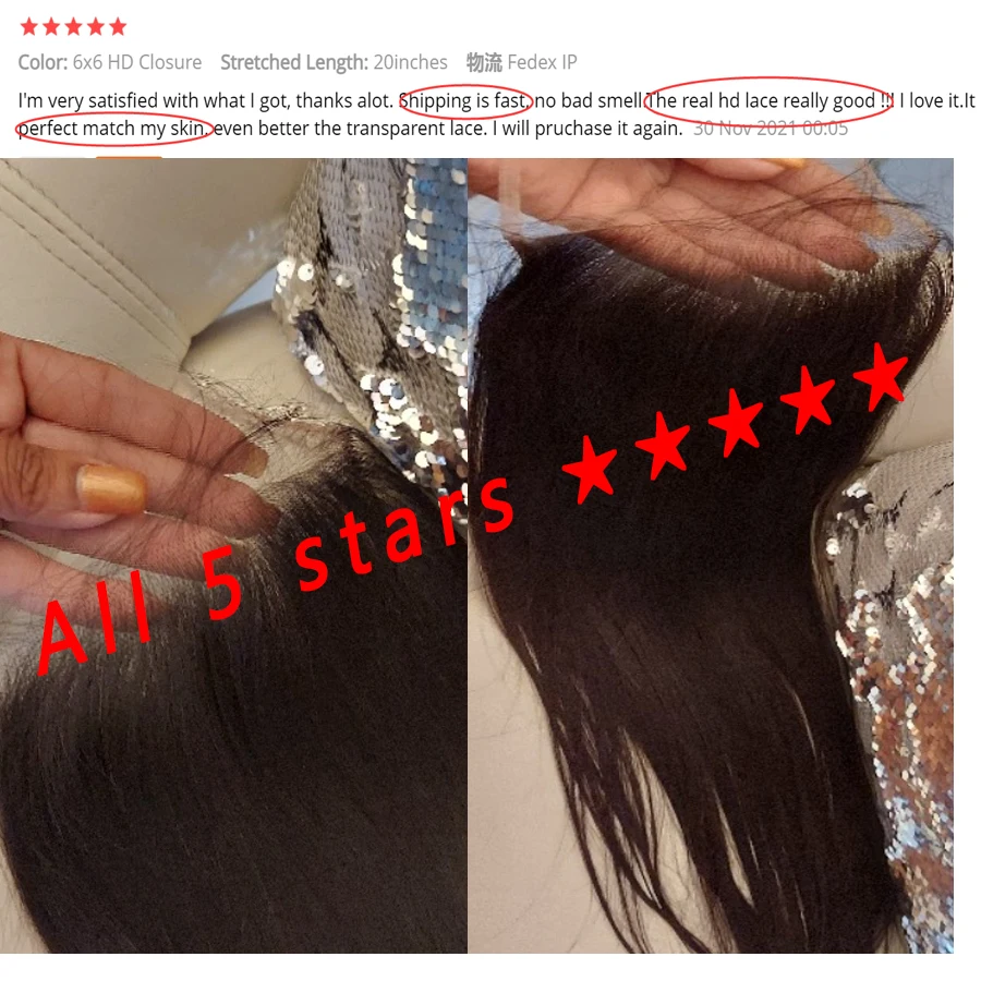 Hair Material: 100 Unprocessed Human Hair Real HD Transparent Swiss Lace Frontal Closure Brazilian Virgin Human Hair,Mink Straight Remy Invisible Full Lace Frontal Closure Hair Pieces