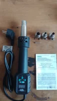 This is a great hit air soldering tool, no base station, get the option package with the extra heating element, smaller than other hot air tools i own, but effective, well packed, fast delivery